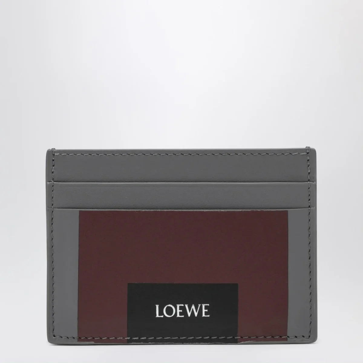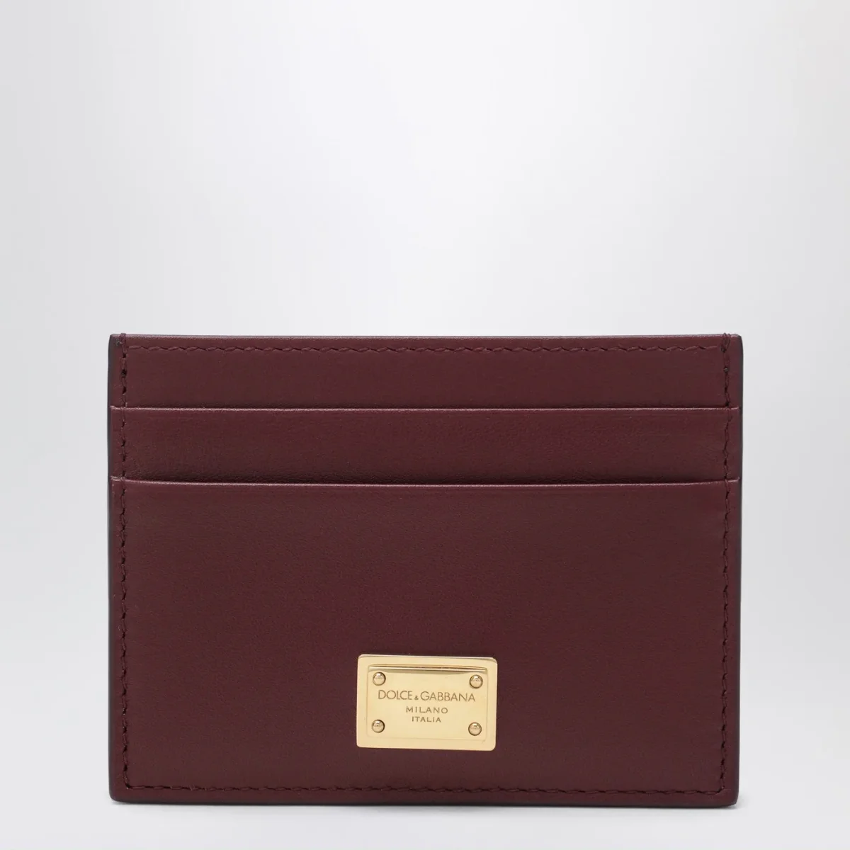 Portacarte bordeaux in pelle con targhetta logata