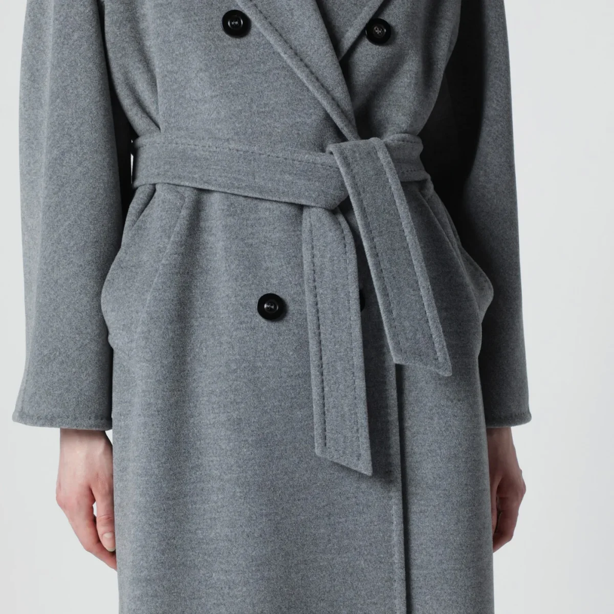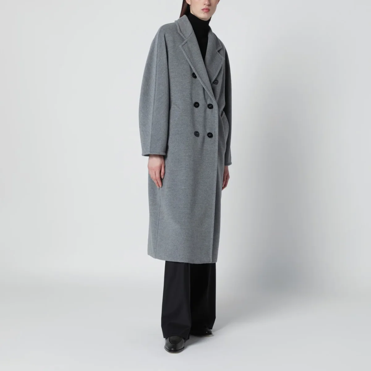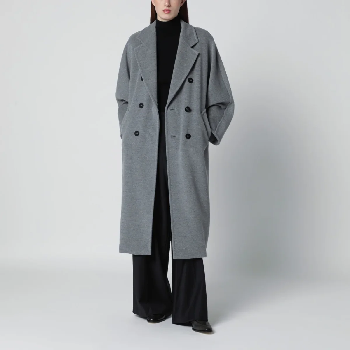 Cappotto doppiopetto di Max Mara in lana• Cachemire grigio chiaro• Linea over e revers ampio classico• Maniche a kimono lunghe risvoltabili• Due tasche laterali a filetto• Chiusura con bottoni