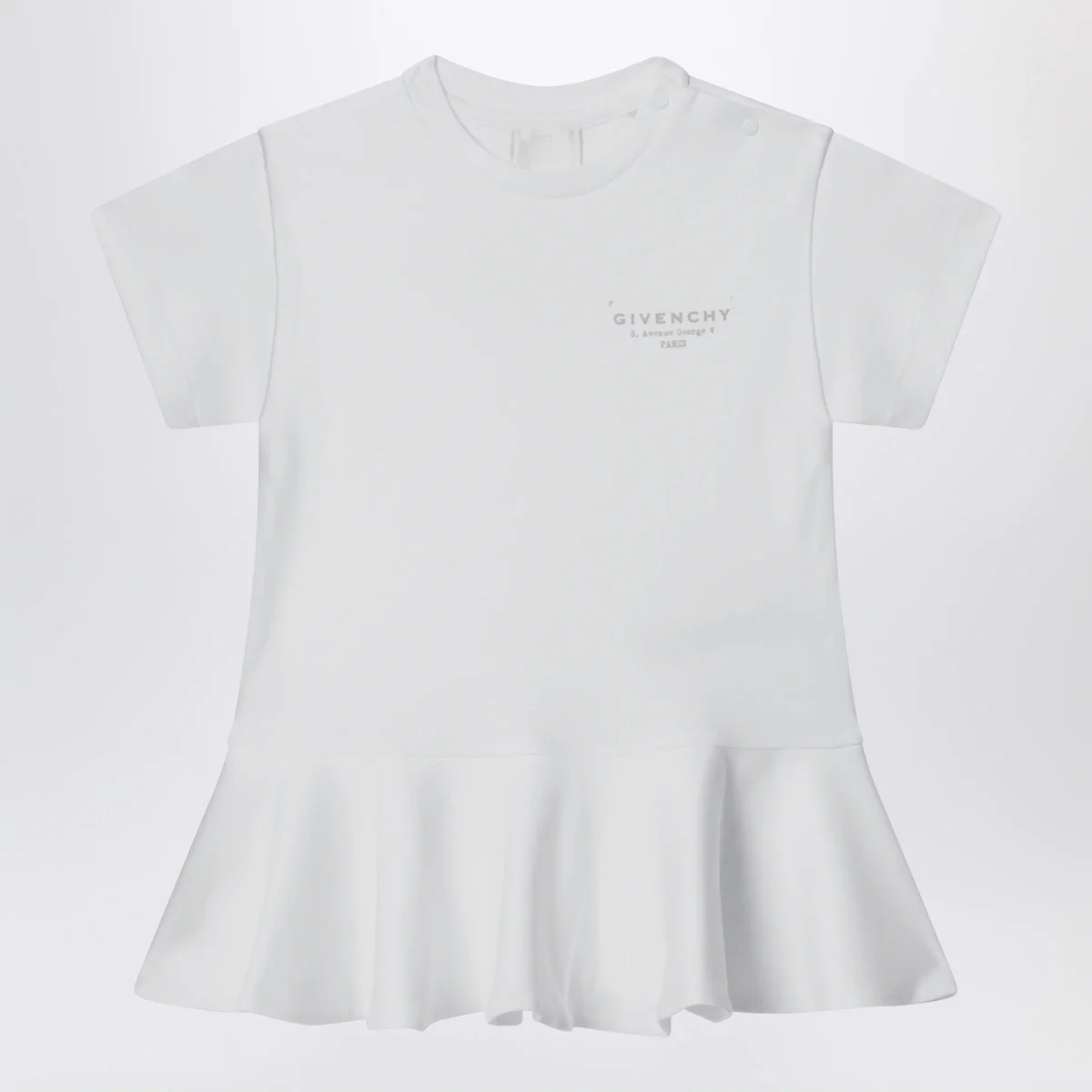 Abitino girocollo di Givenchy in cotone• Colore: Bianco• Maniche corte• Stampa logo sul petto e sul retro• Gonna a balze