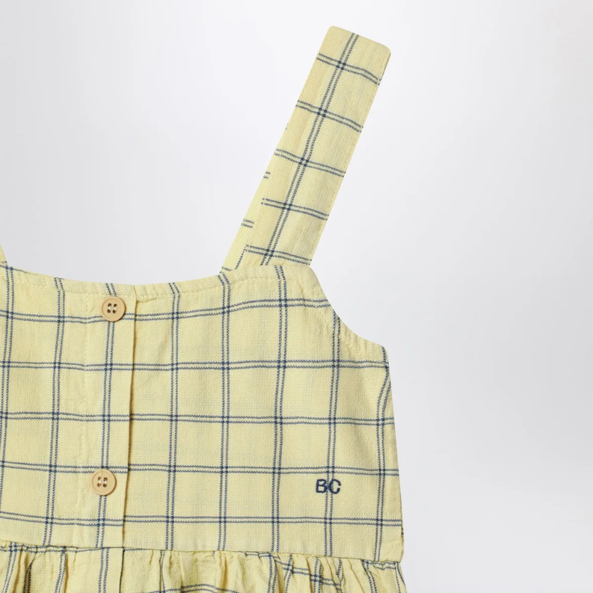 Abitino di Bobo Choses in cotone organico giallo con motivo check• Spalline piatte• Ricamo logo sul davanti• Design elasticizzato sul retro• Chiusura frontale con bottoni