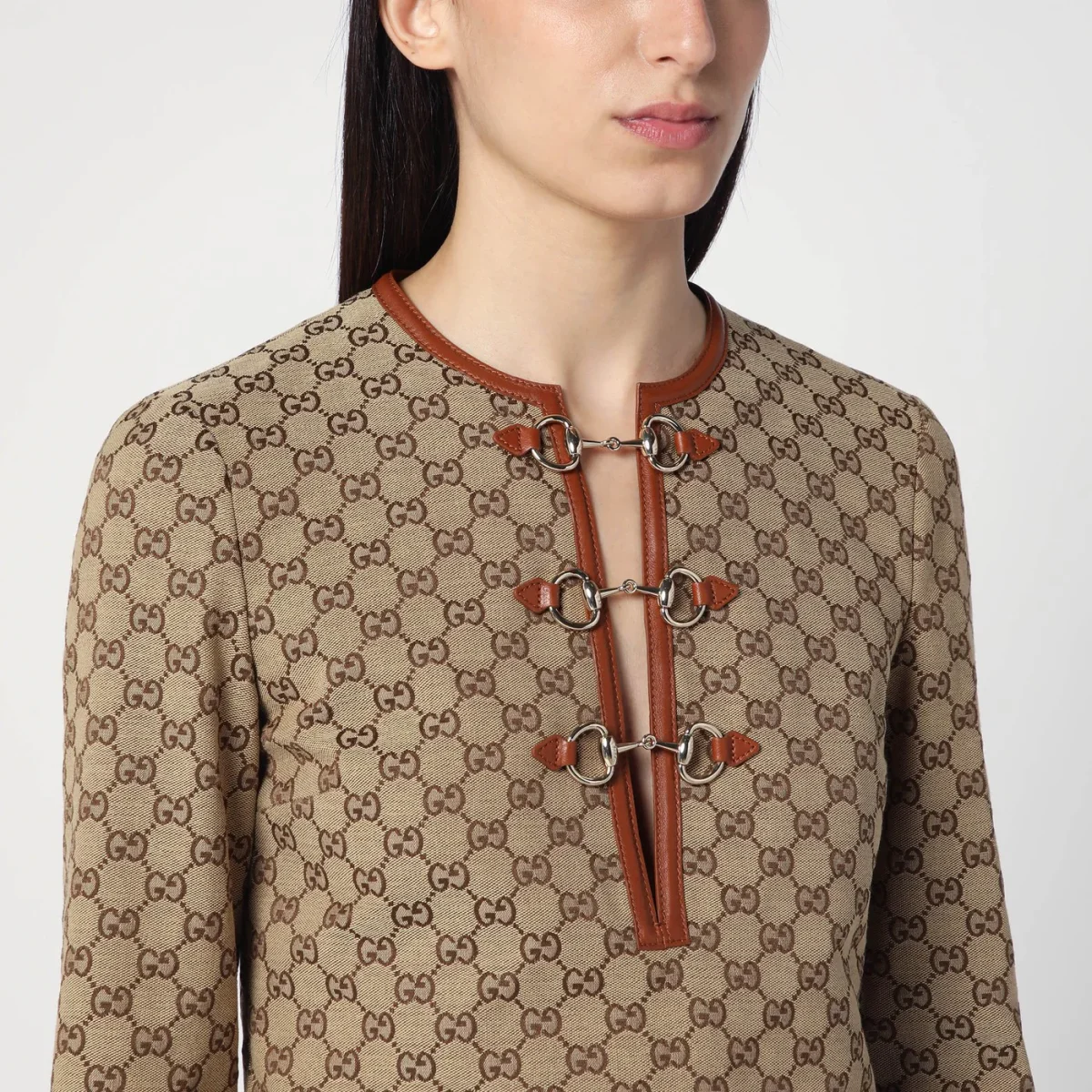 Abito beige in tessuto GG con morsetto