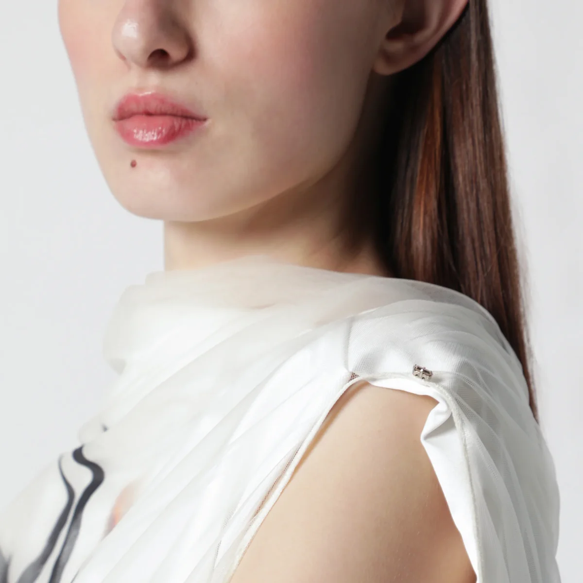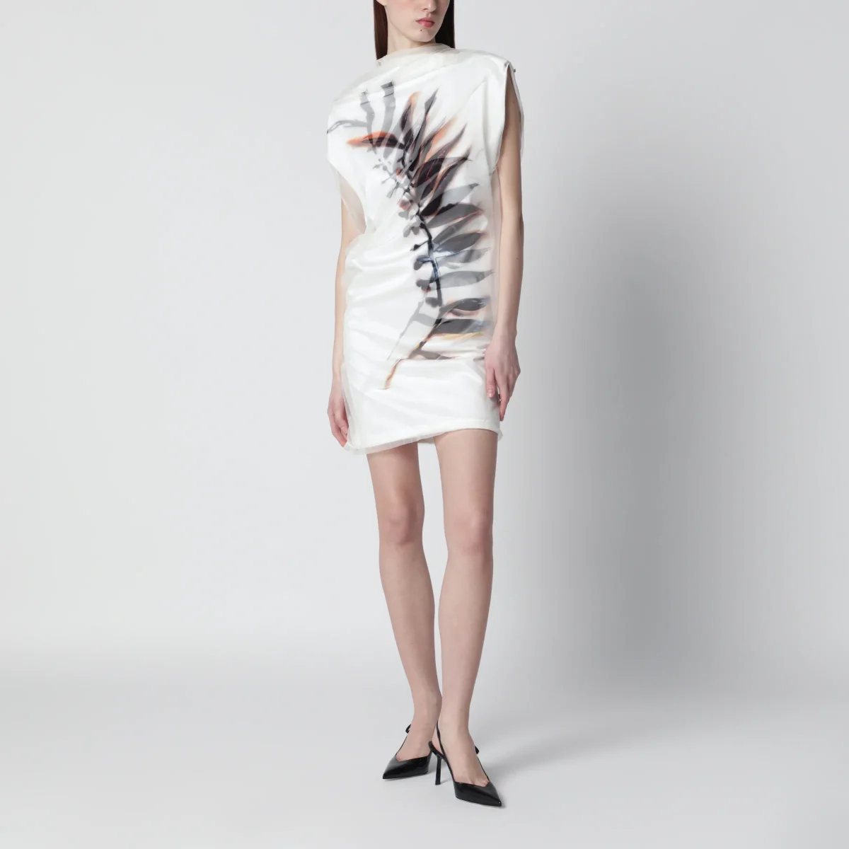 Abito corto a doppio strato in raso opaco stretch e tulle leggero semi trasparente di Sportmax• Costruzione a doppio strato con capo interno e capo esterno• Stampa piazzata sul davanti con effetto trompe l’oeil• Capo interno con scollo a V sul retro• Capo esterno con collo rialzato e leggermente drappeggiato• Vestibilità regolare