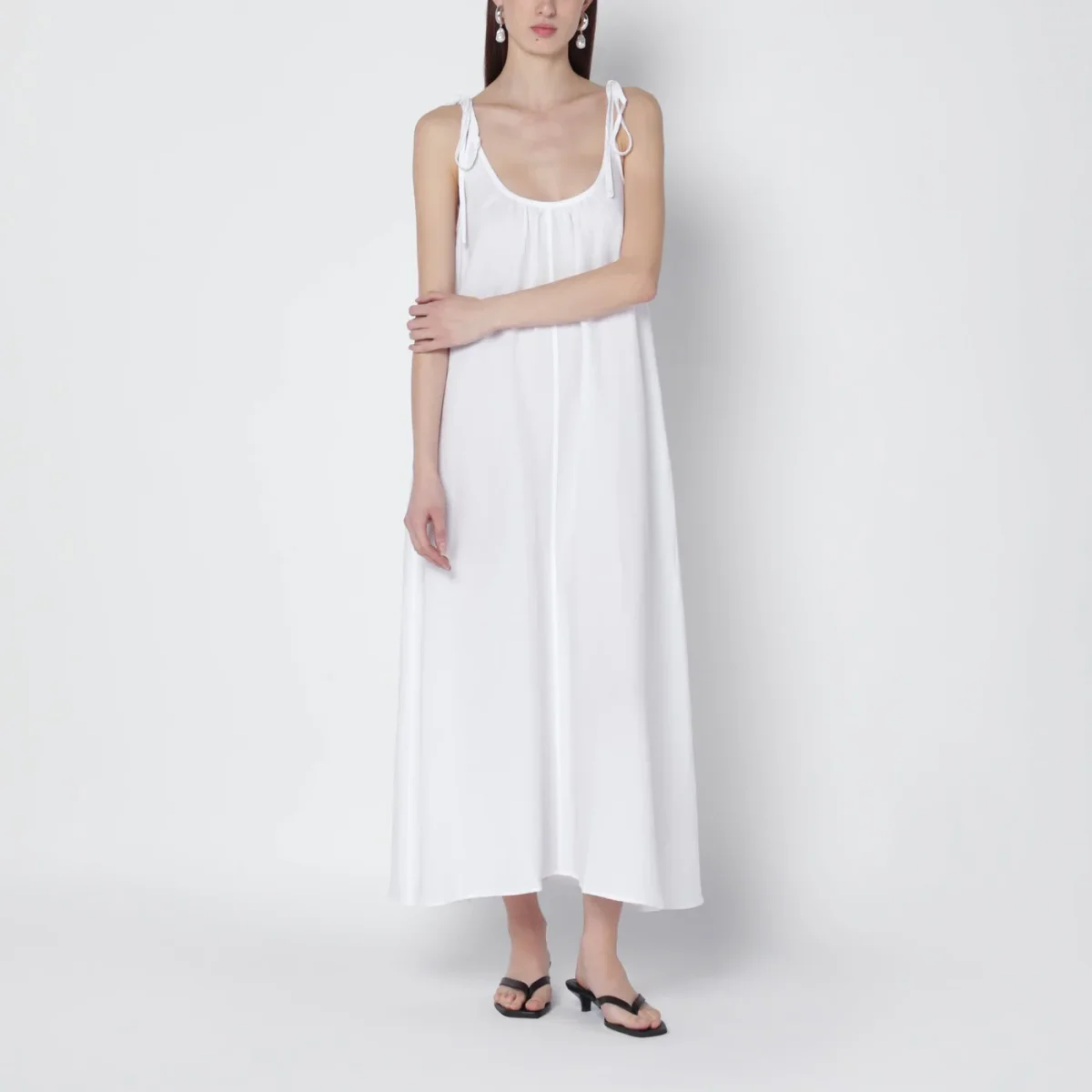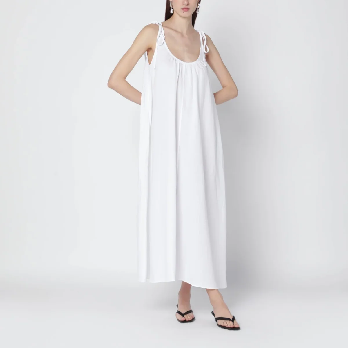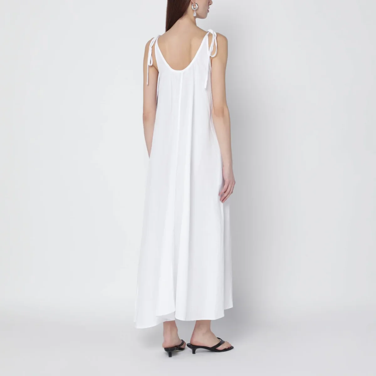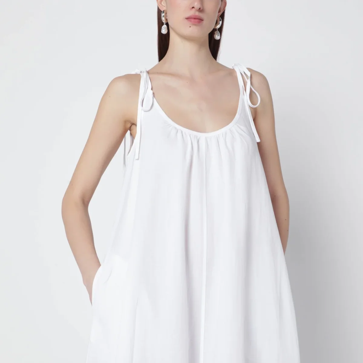 Abito lungo di Anine Bing in misto lino bianco• spalline regolabili con laccetti• ampio scollo sul davanti e sul retro• vestibilità fluida• due tasche laterali