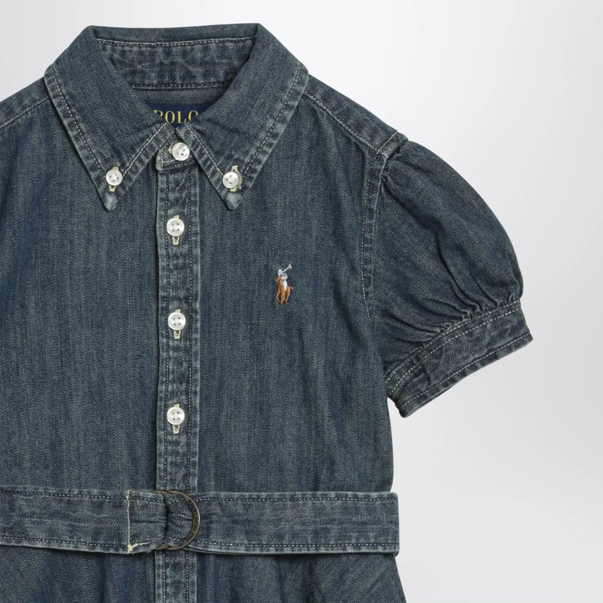Abitino di Polo Ralph Lauren in denim di cotone• Colore: Blu scuro• Maniche corte• Chiusura con bottoni sul davanti• Logo ricamato sul petto• Cintura regolabile in vita• Colletto button-down