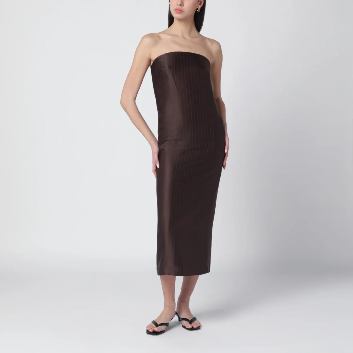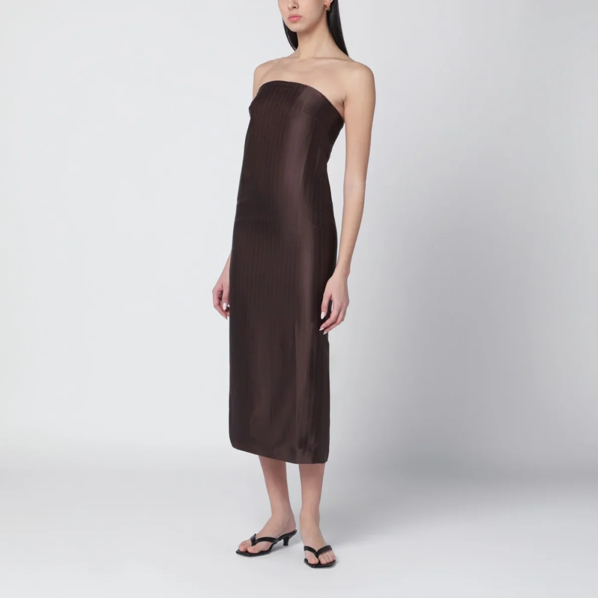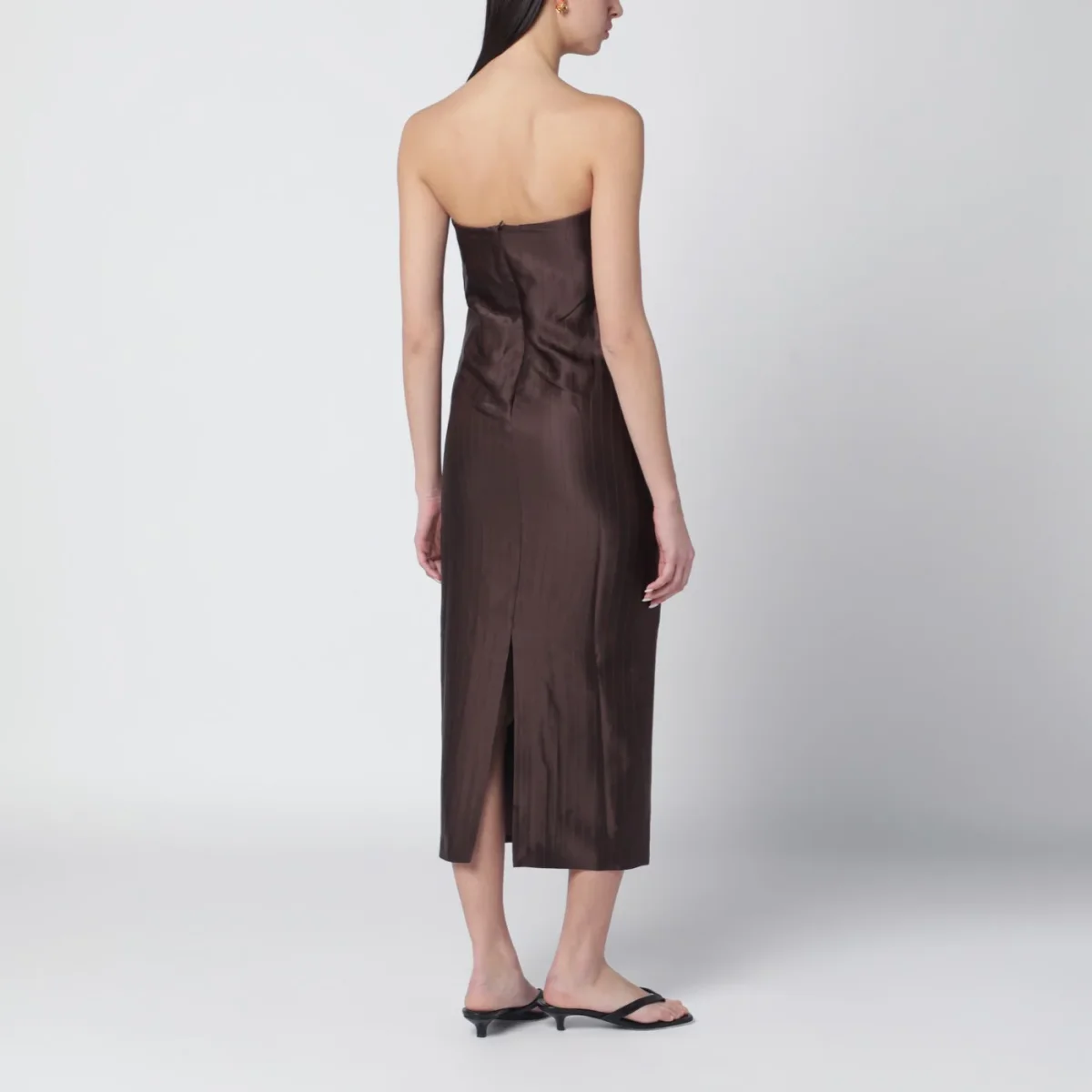 Abito bustier di LouLou de Saison in misto seta a righe monocromatiche marrone scuro• taglio aderente• spacco sul retro• chiusura posteriore con zip