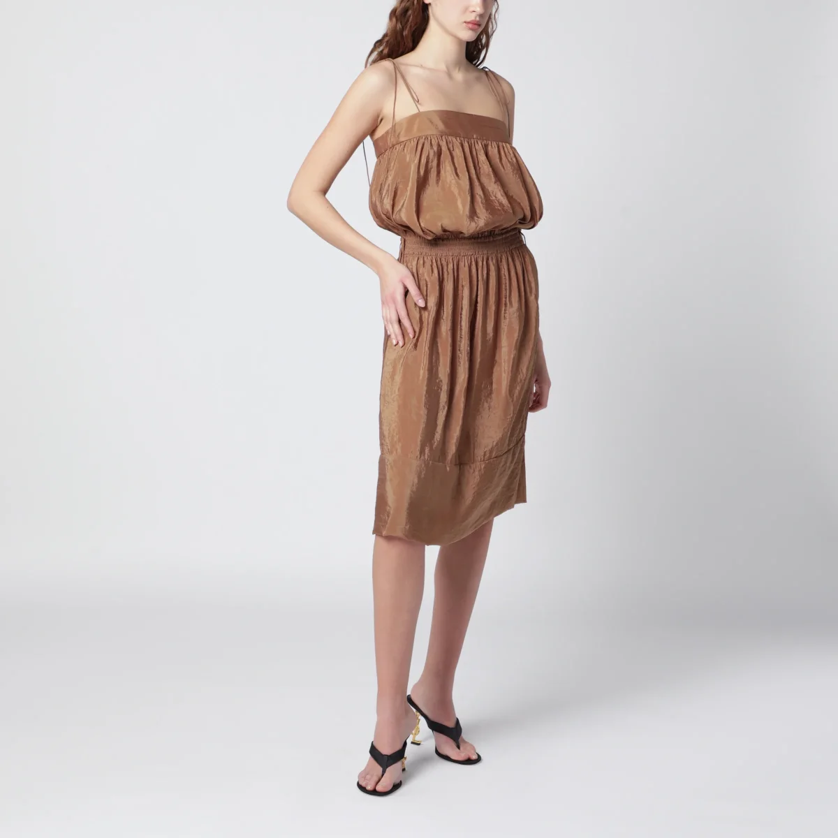 Abito color caramello in crepe di misto nylon