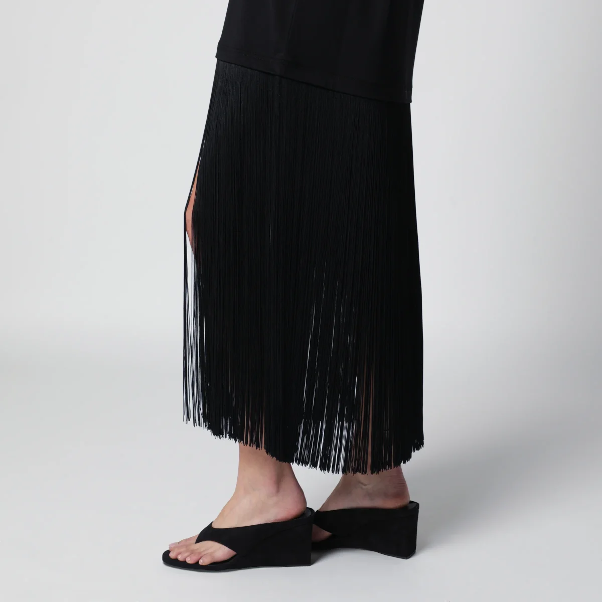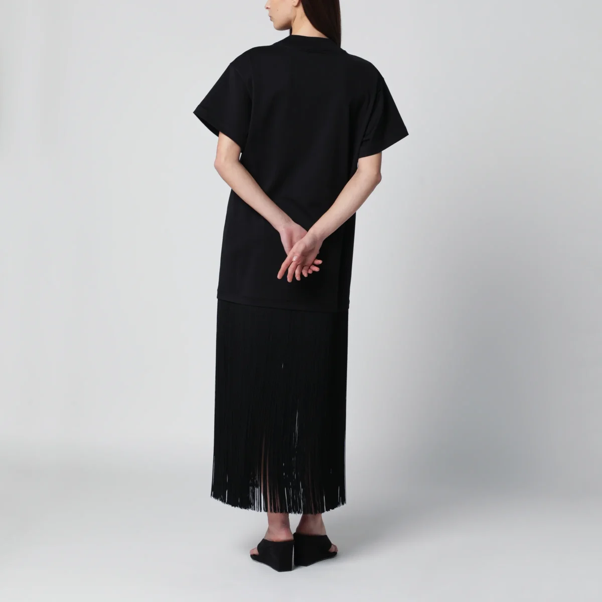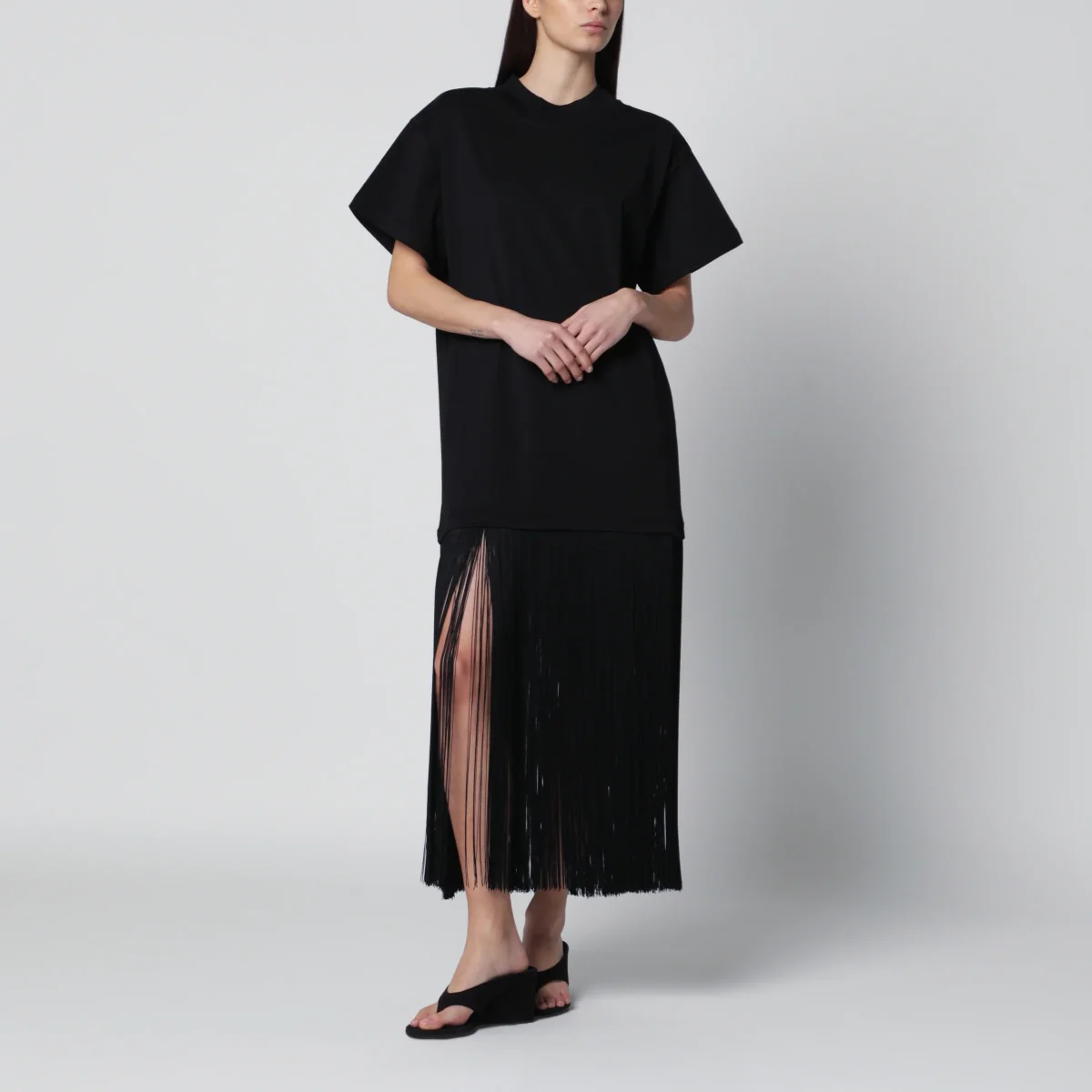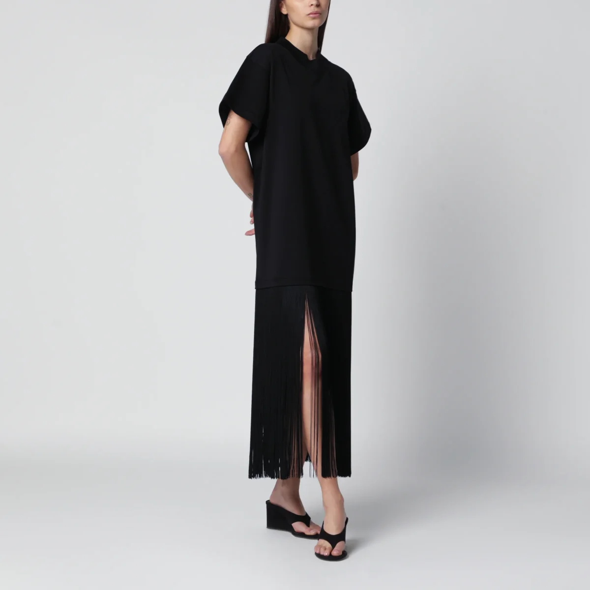 Abito con frange in jersey di cotone nero