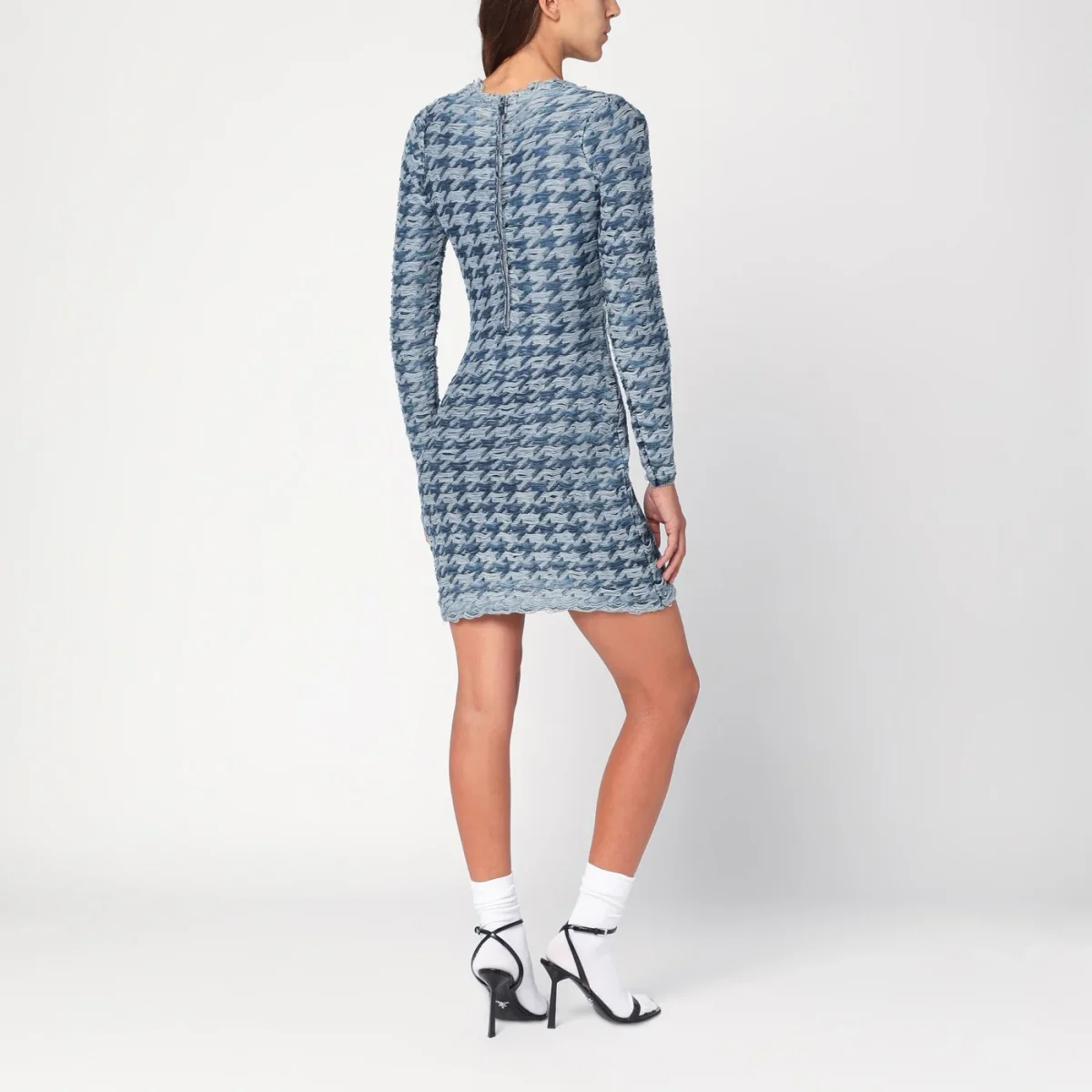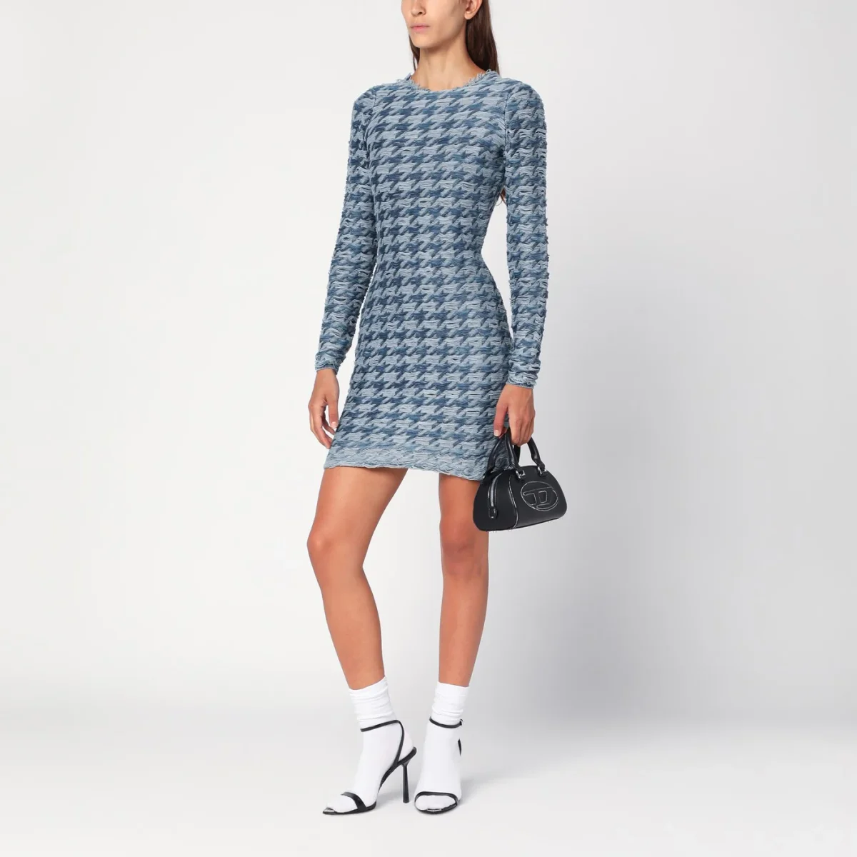 Abito girocollo di Diesel in cotone con trama sui toni del blu e del grigio azzurro, caratterizzata da maniche lunghe, chiusura posteriore con zip e vestibilità aderente.