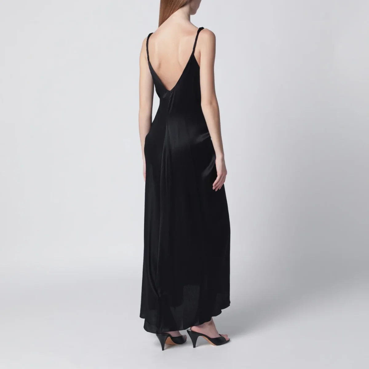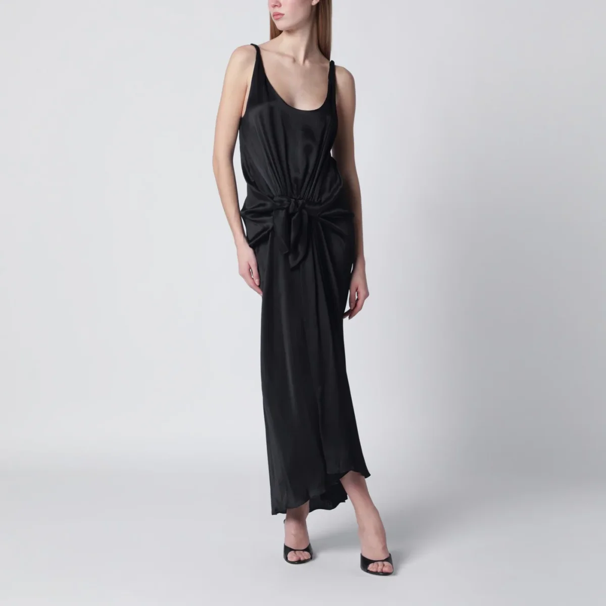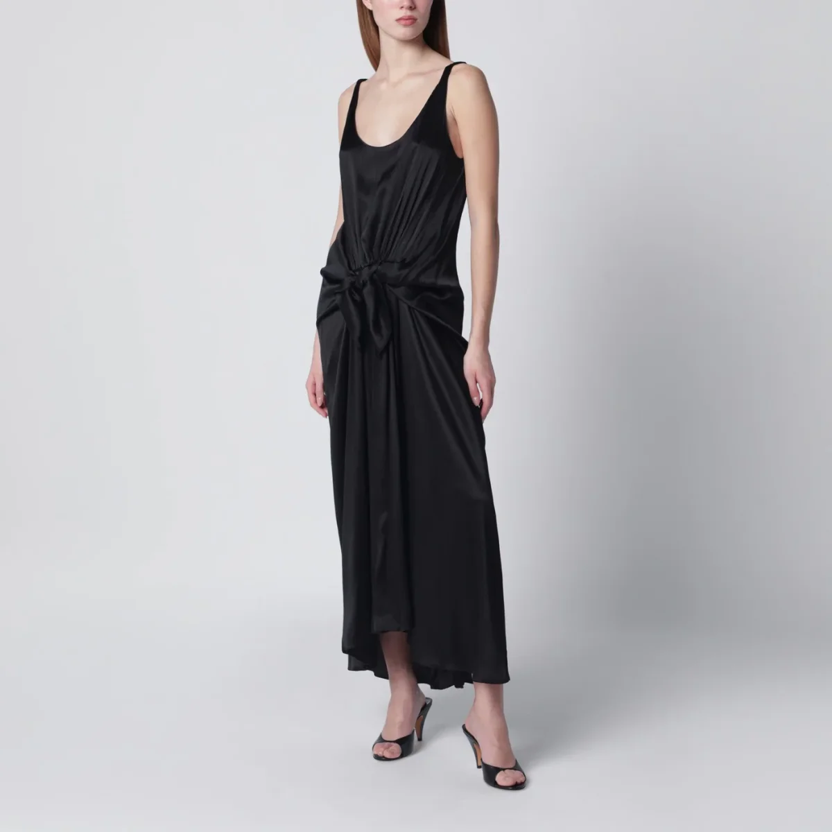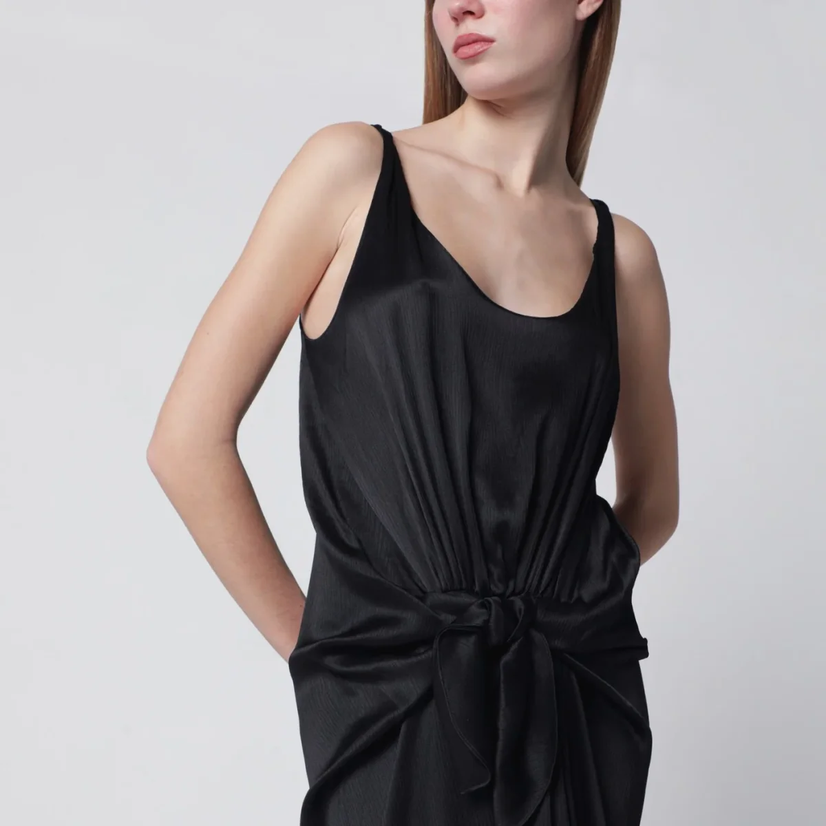 Abito lungo di JW Anderson in seta nero• spalline sottili• dettaglio annodato sul davanti• ampia scollatura sul davanti e sul retro