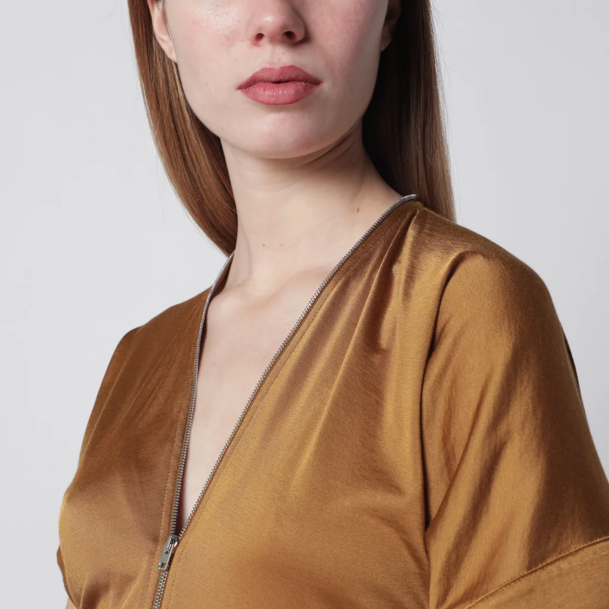 Abito con zip marrone cannella in jersey di cotone viscosa