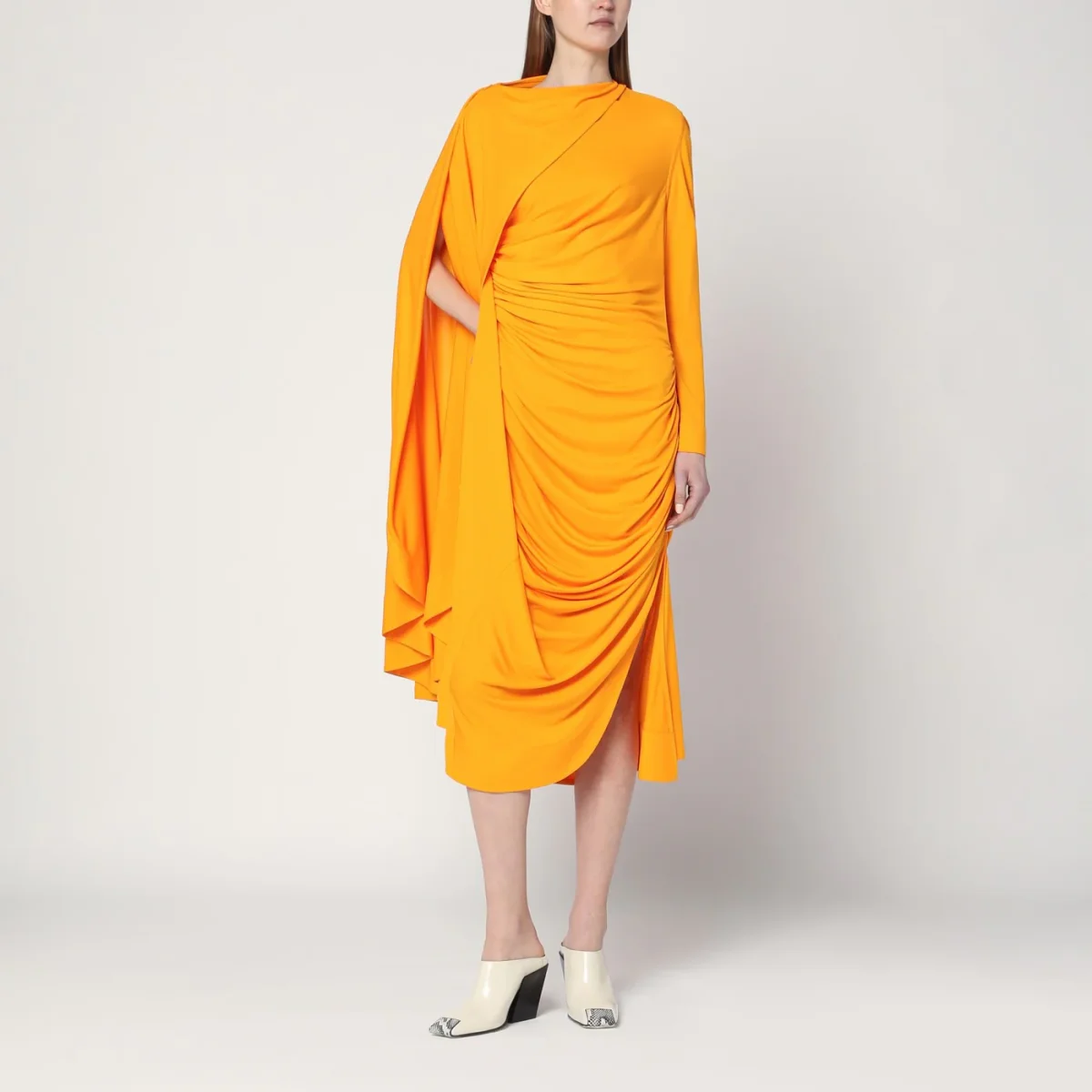Abito drappeggiato color mandarino