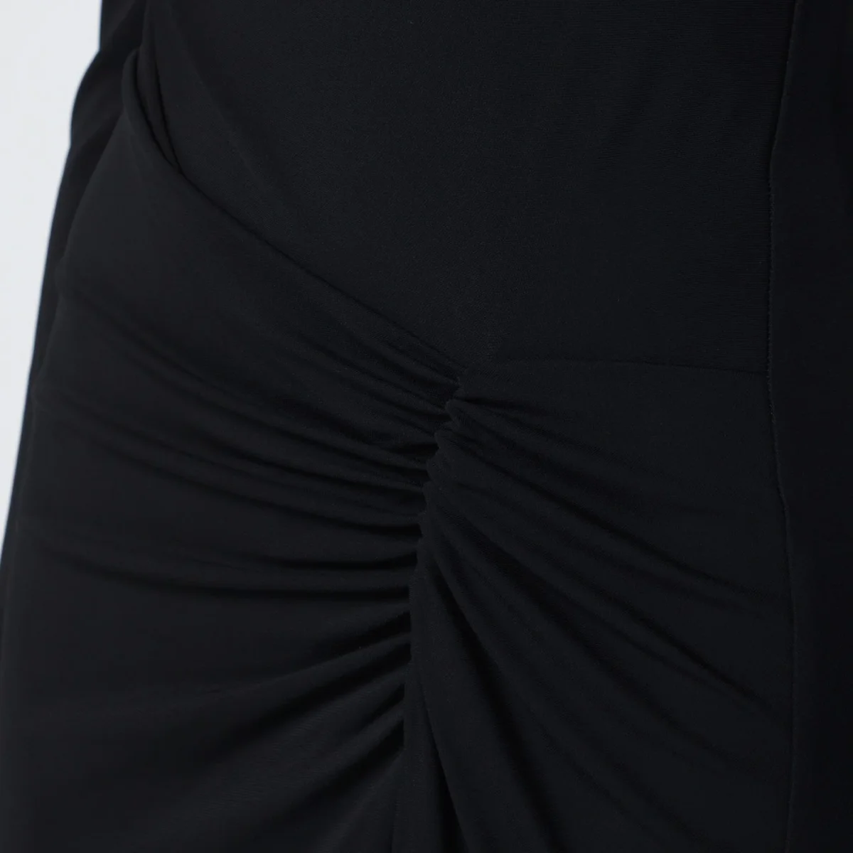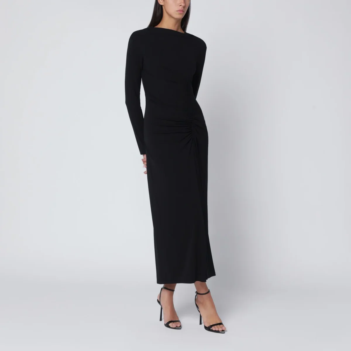 Abito midi di Simkhai in jersey nero, caratterizzato da maniche lunghe e drappeggio sul davanti.
