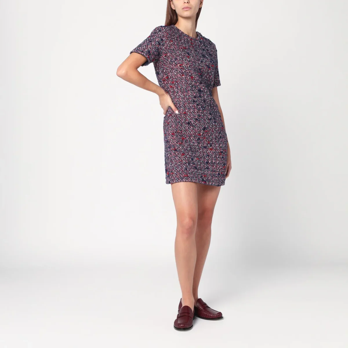 Abito in lana bouclé blu e rosso