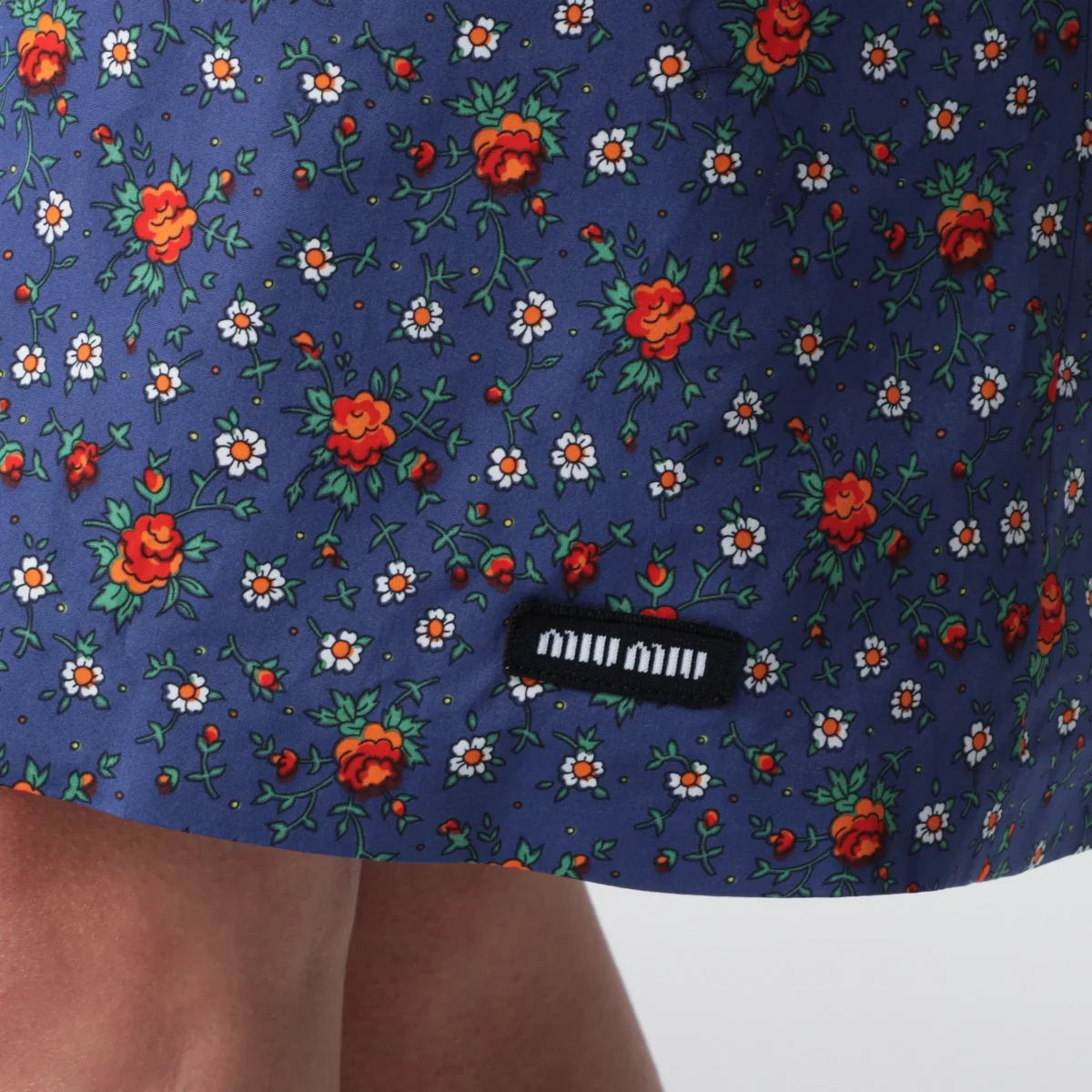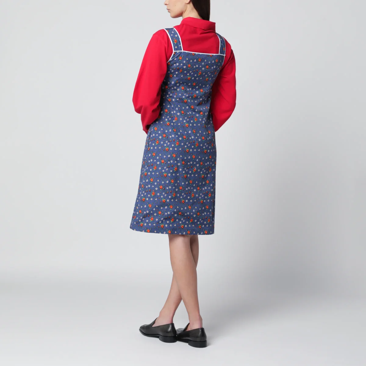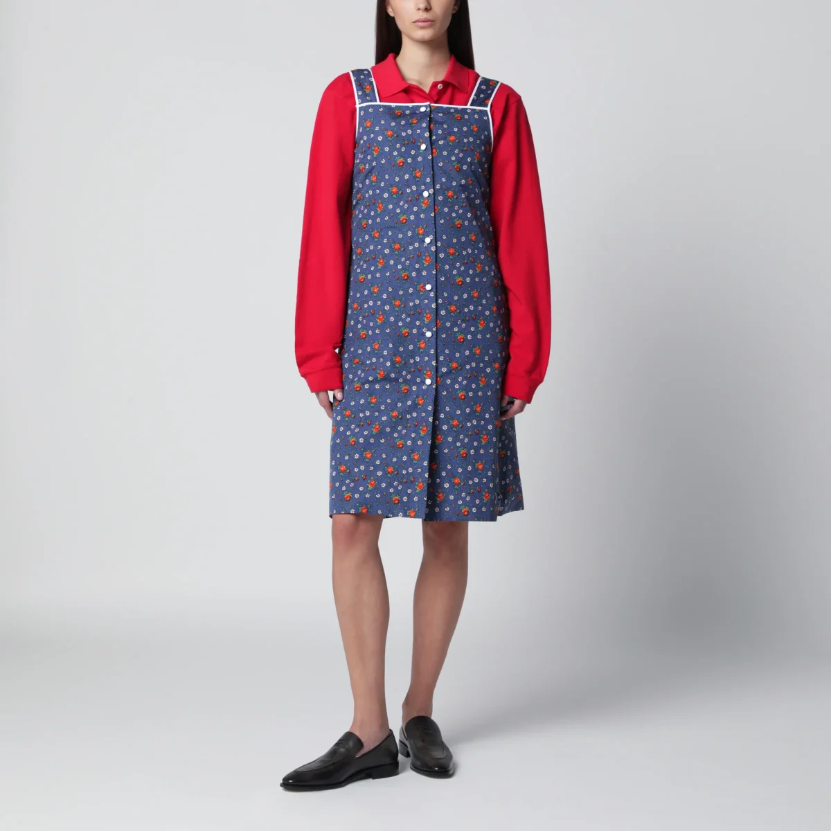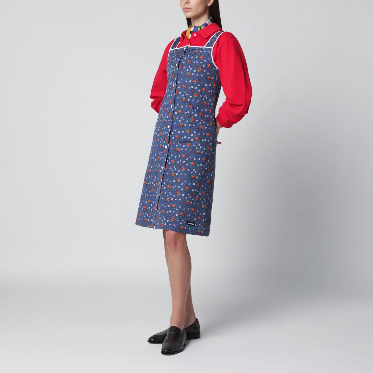 Abito di Miu Miu in popeline di cotone• Colore: Blu con stampa floreale arancione• Vestibilità svasata• Capo foderato• Scollo dritto• Chiusura frontale con bottoni• Bretelle• Tasche sui fianchi• Fondo dritto• Etichetta logo in maglia• Richiamo ai classici grembiuli domestici