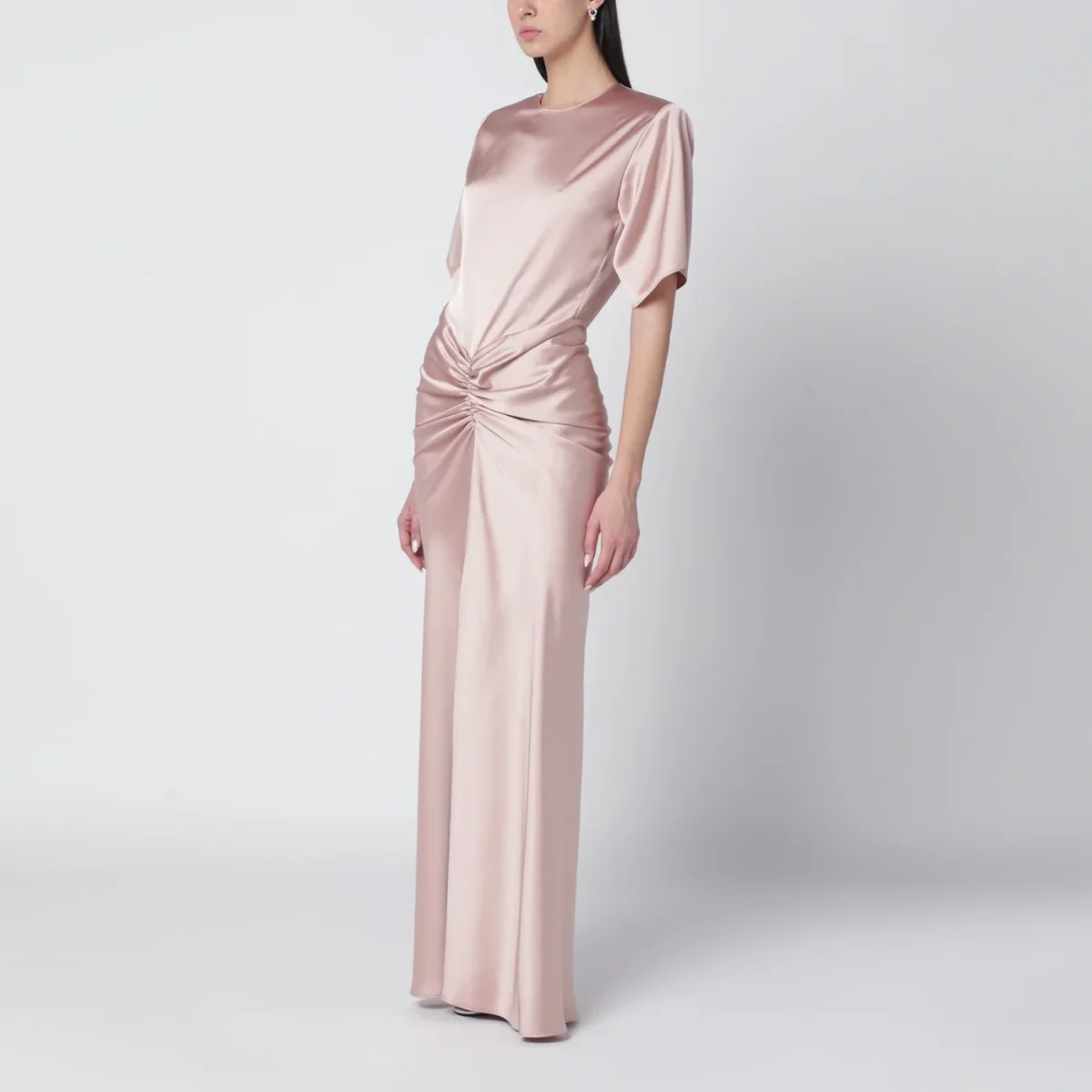 Abito lungo girocollo di The Andamane in jersey interlock rosa chiaro• Maniche corte• Chiusura posteriore con zip• Dettaglio arricciato sul davanti e sul retro