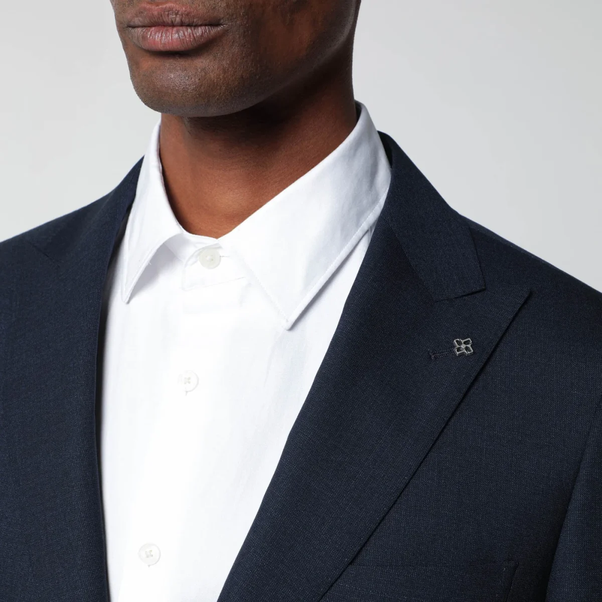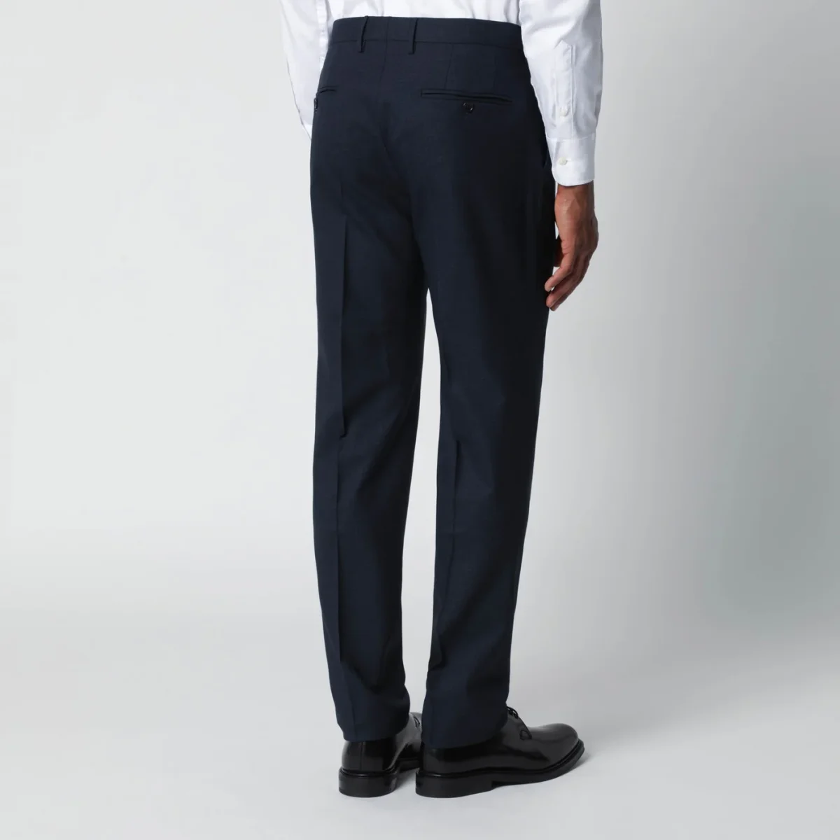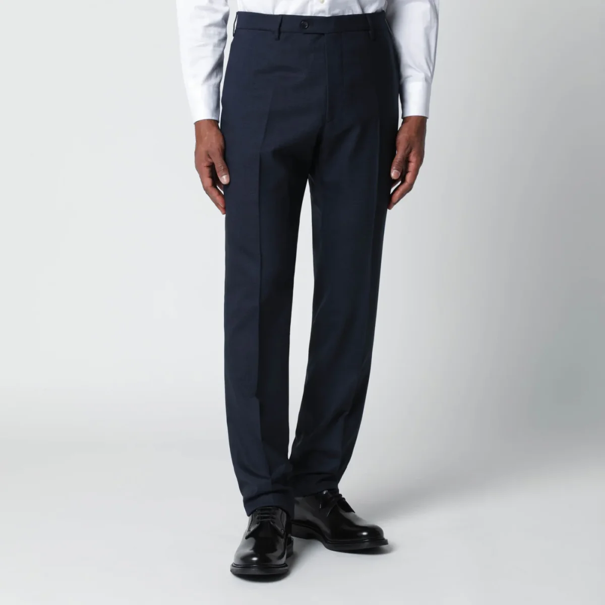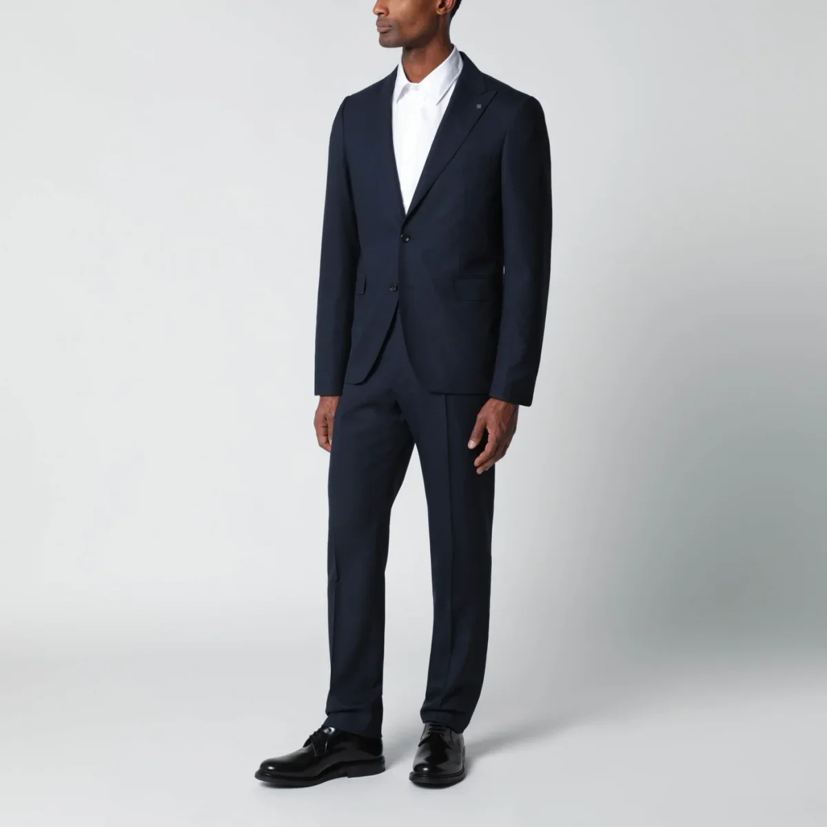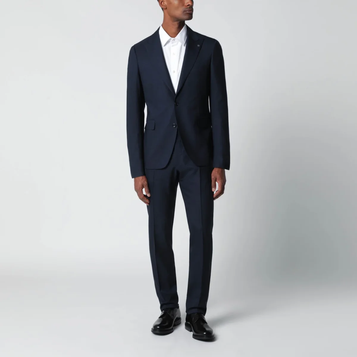 Abito monopetto di Tagliatore in lana vergine blu• Maniche lunghe• Chiusura tramite bottoni• Due tasche sul davanti con patta• Una tasca a filetto sul petto• Revers a lancia• Doppio spacco posteriorePantalone con chiusura frontale• Passanti per cintura• Due tasche a filetto sui lati• Due tasche a filetto con bottone sul retro