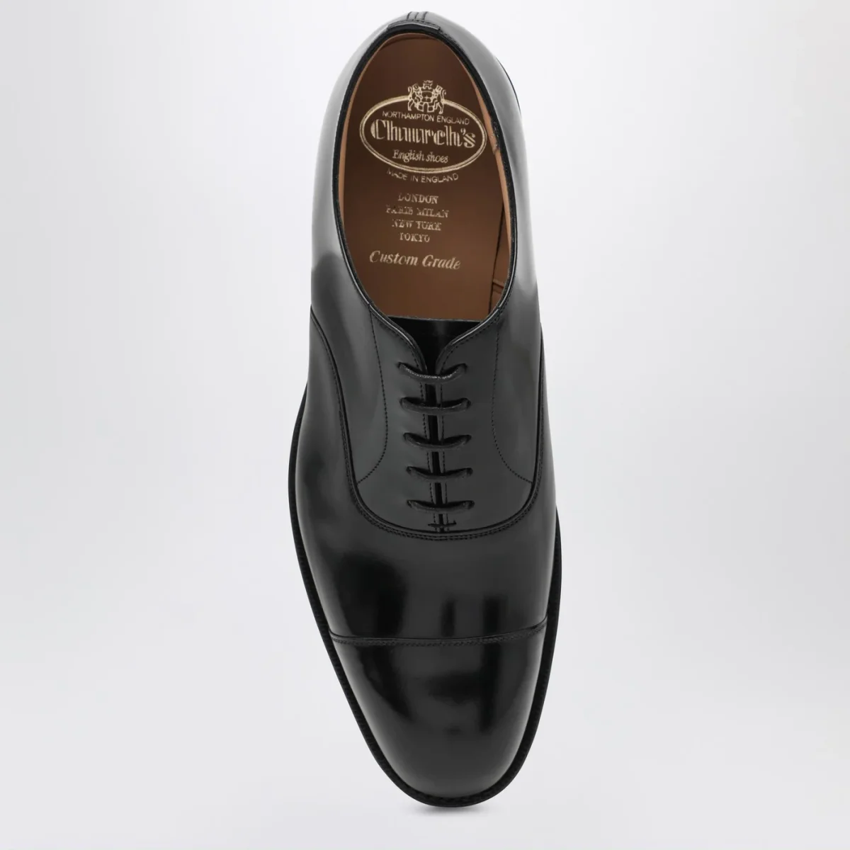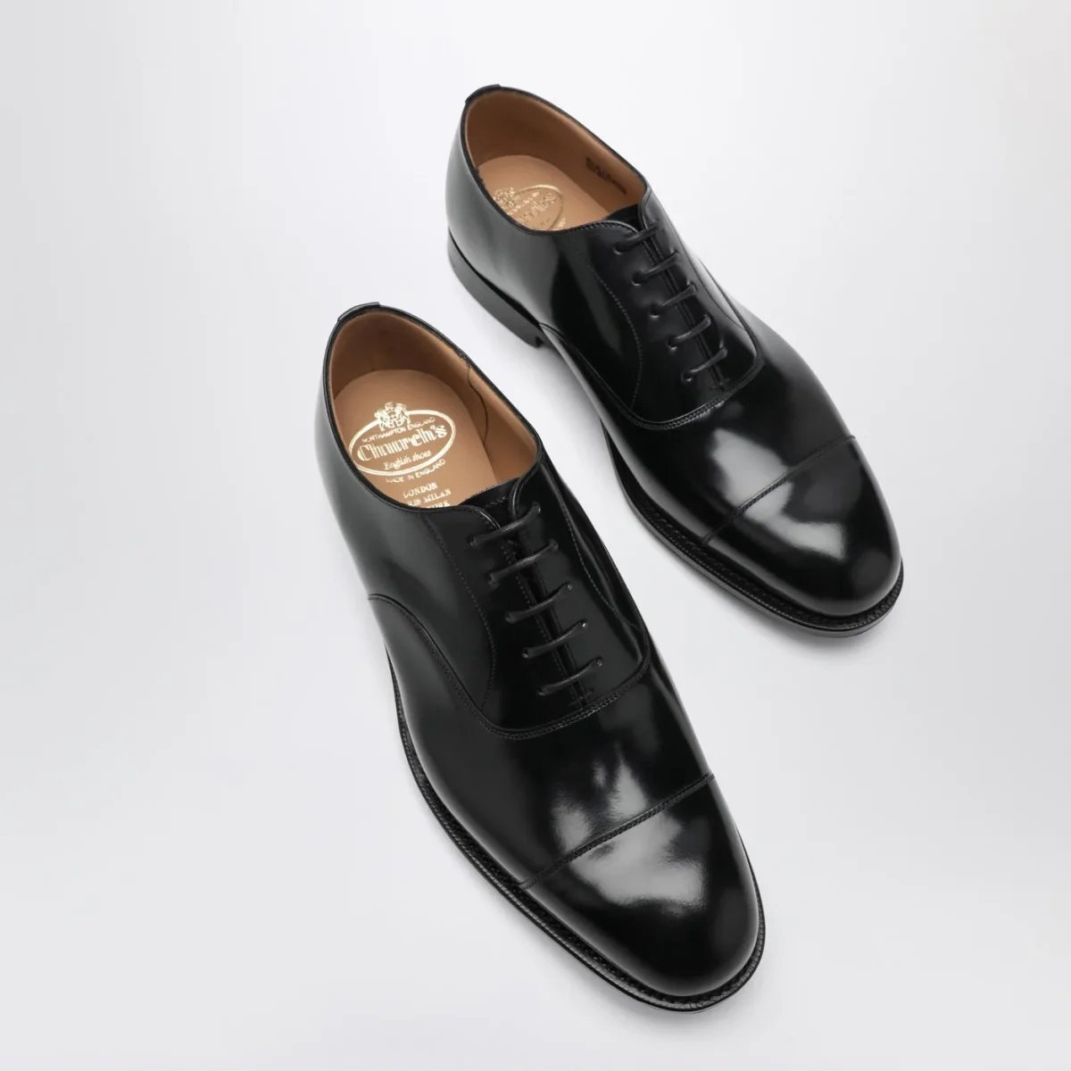 Allacciata Oxford di Church’s in pelle di vitello nera con finitura spazzolata lucida