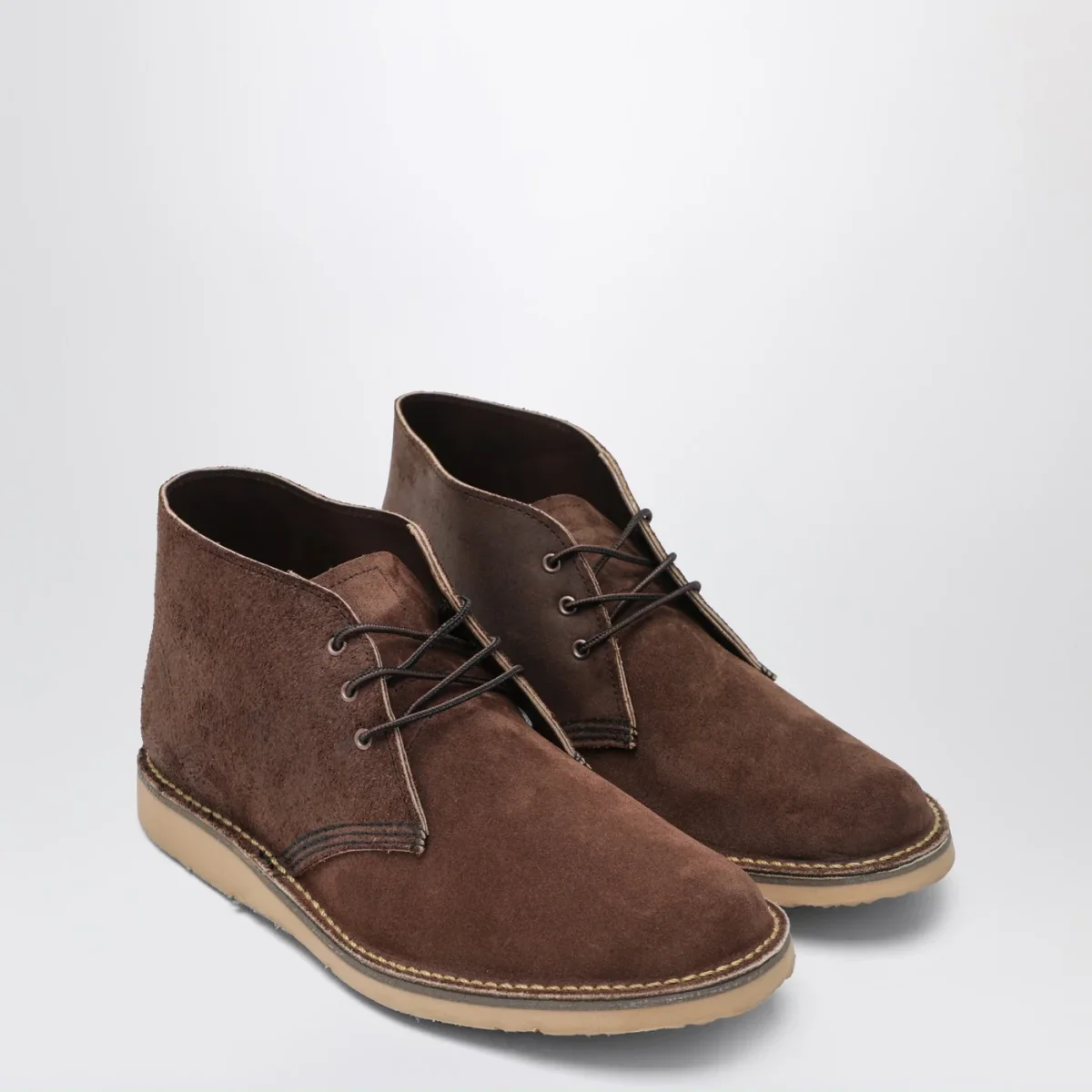 Allacciata di Redwing in pelle scamosciata marrone, caratterizzata da allacciatura con lacci, plantare OrthoLite® e suola in gomma.