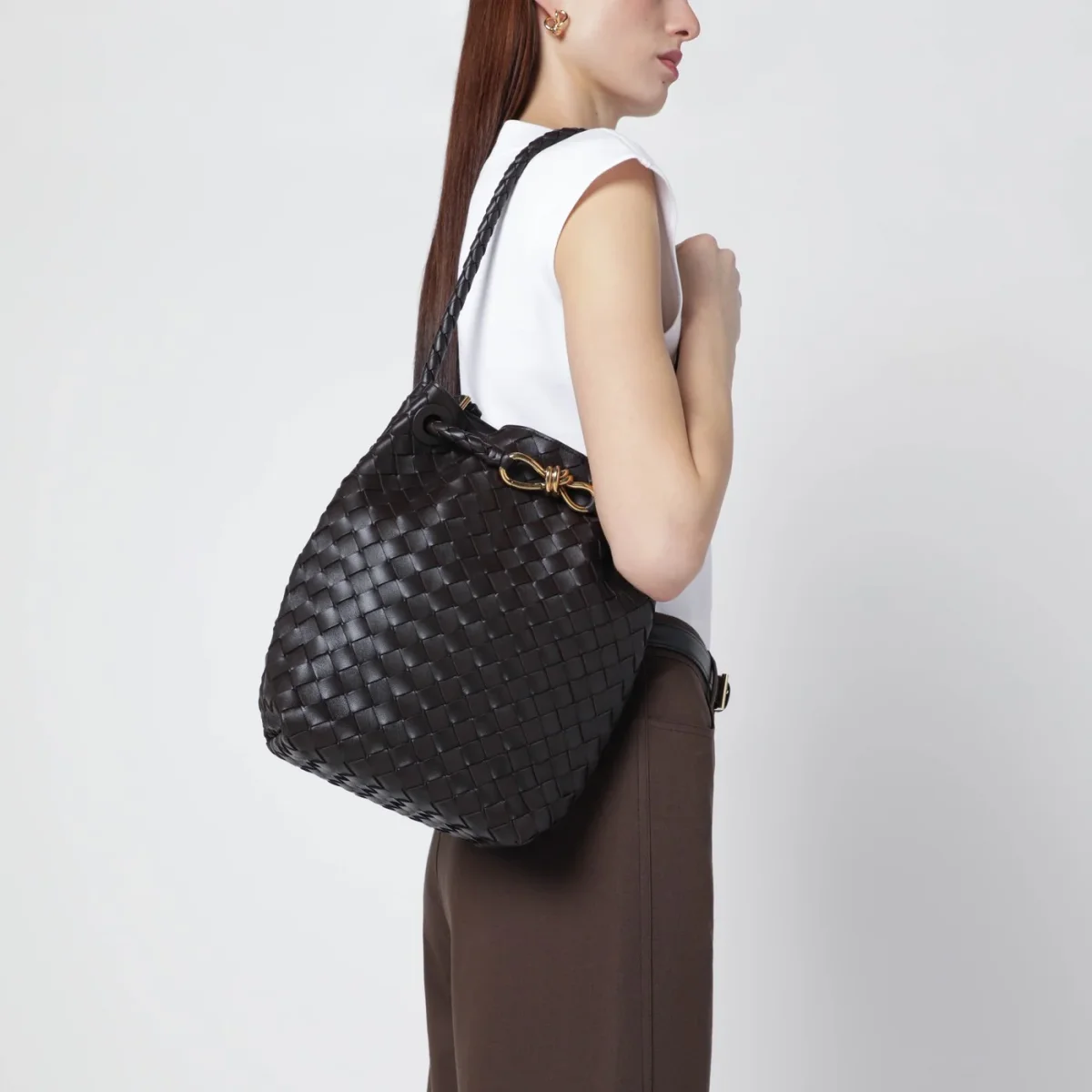 Borsa a secchiello di Bottega Veneta in pelle fondente