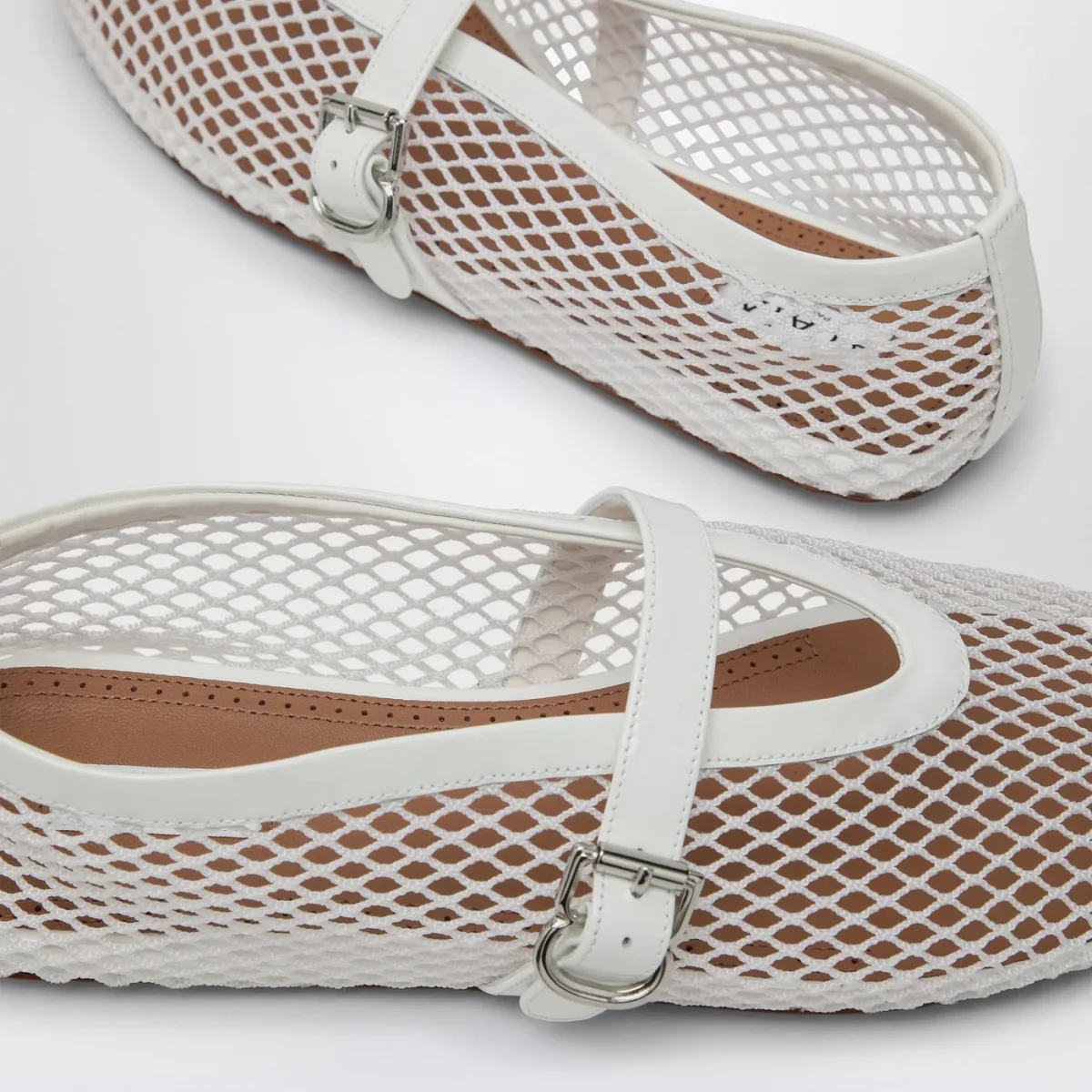 Ballerina di Alaïa in rete e pelle di vitello bianca