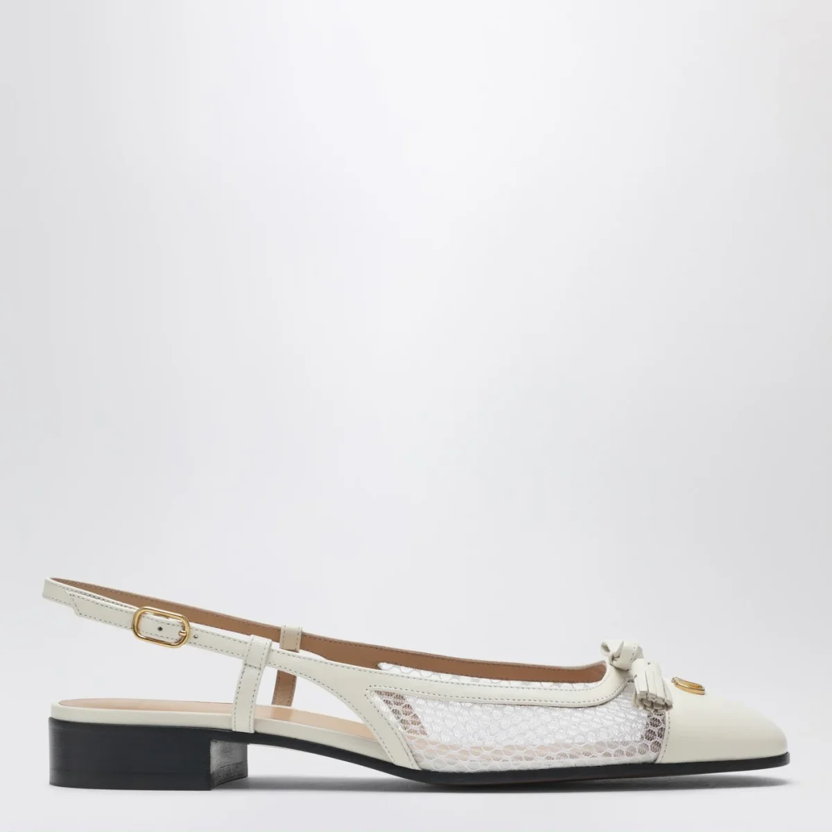 Ballerina Slingback di Valentino Garavani in pelle e tessuto avorio
