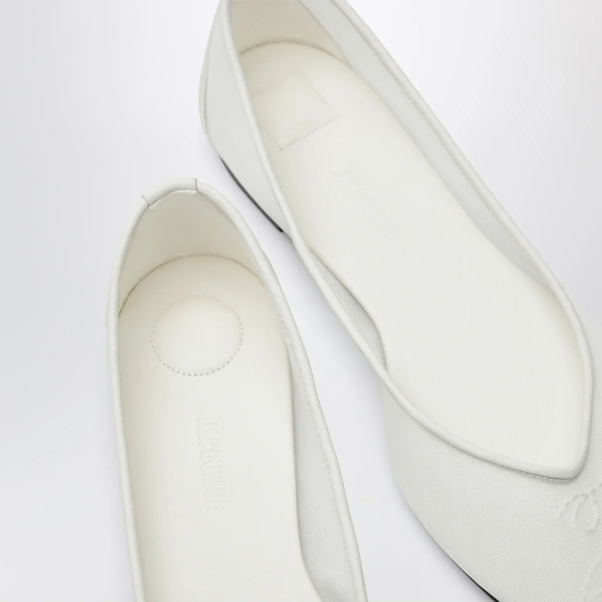 Ballerine a punta in pelle di vitello di Jacquemus• Colore: Bianco• Design a punta• Orlo a contrasto• Suola piatta