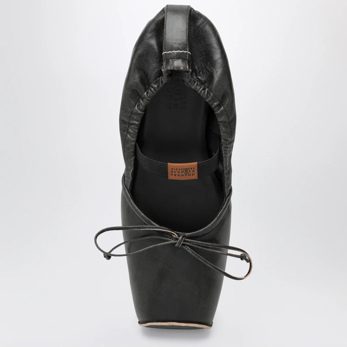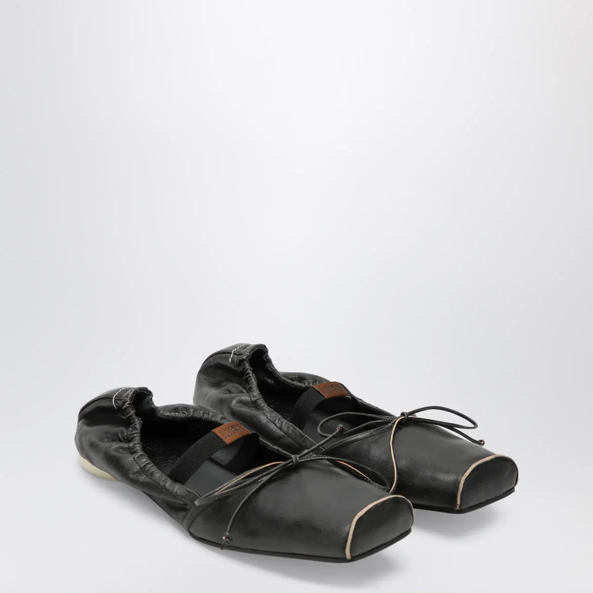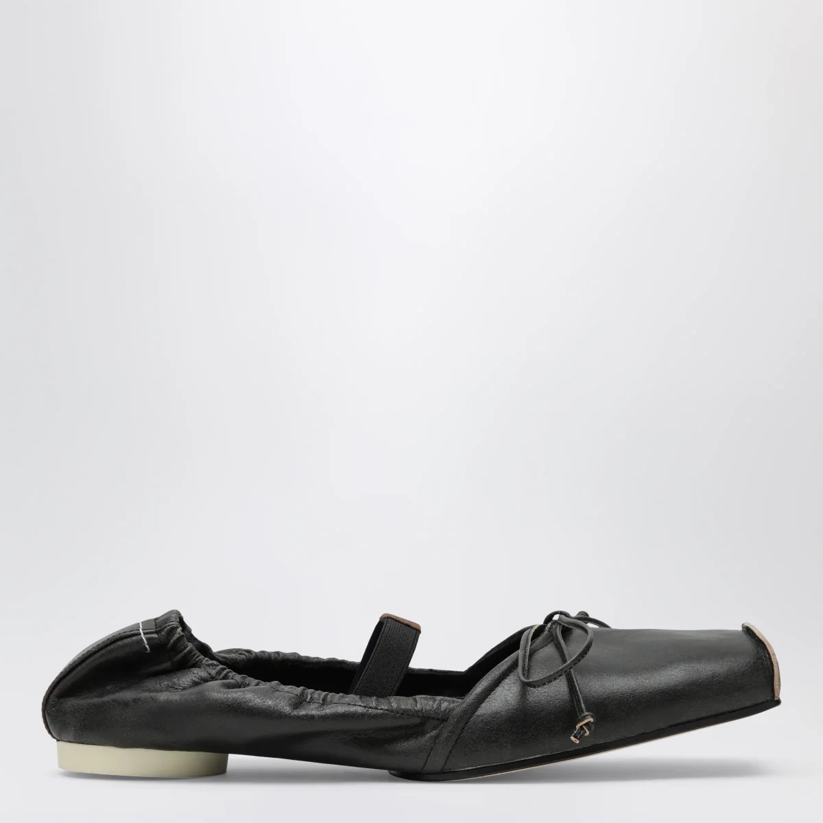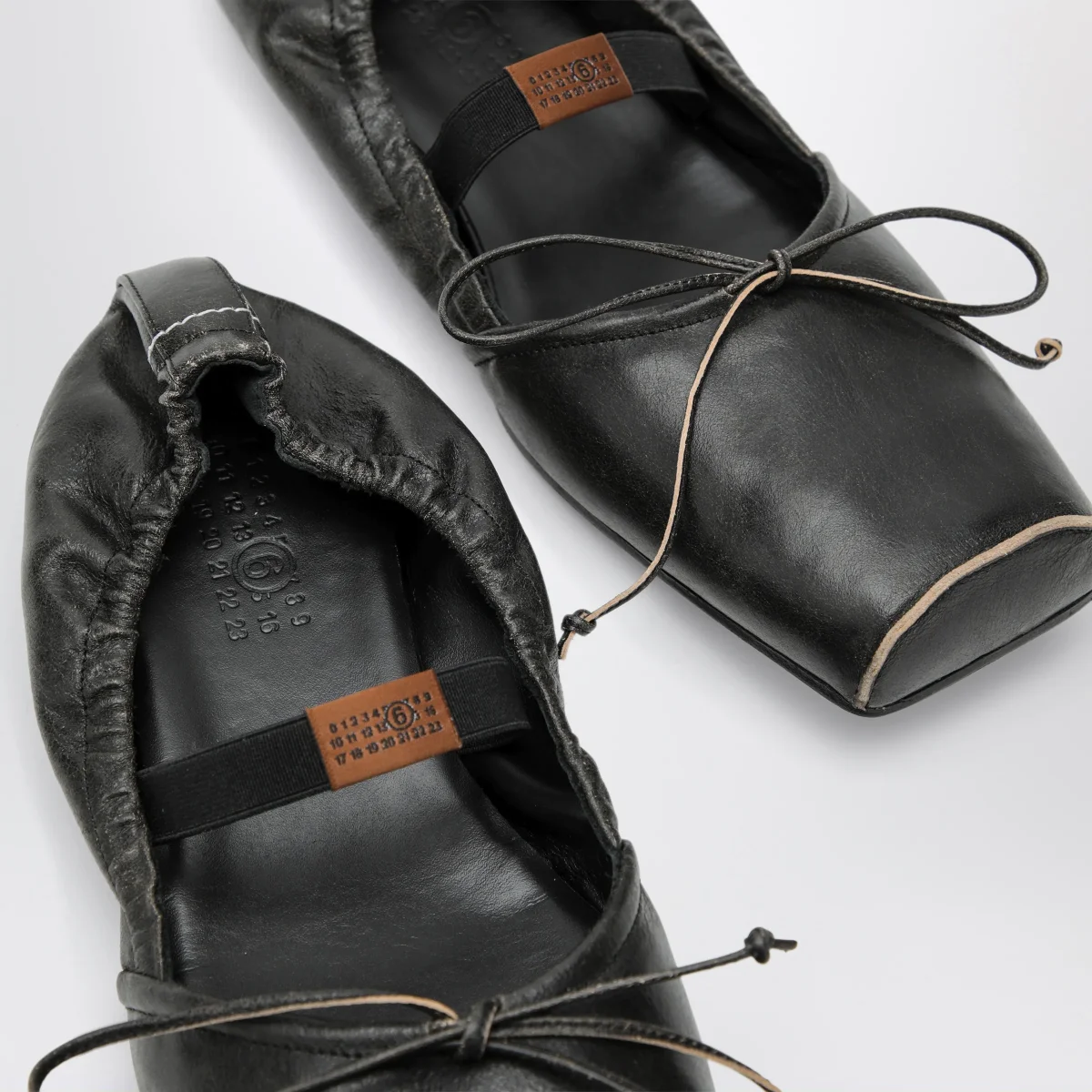 Ballerine a punta squadrata in pelle di MM6• Colore: Marrone effetto vintage• Fiocco decorativo sulla tomaia• Cinturino elastico che attraversa il piede con grafica numerica MM6• Finitura con variazioni naturali per un effetto vissuto e quotidiano• Cuciture bianche sul retro