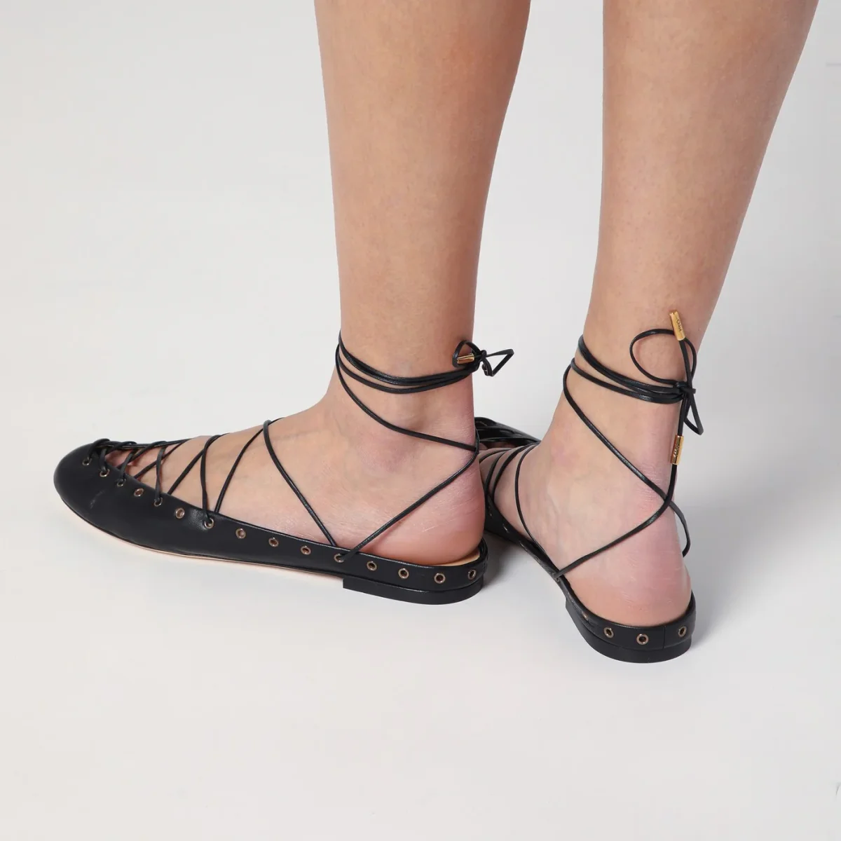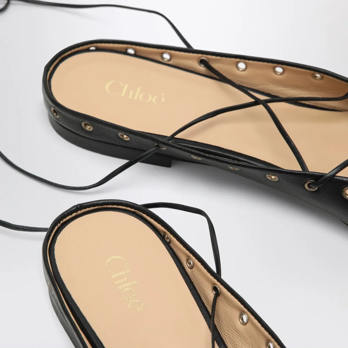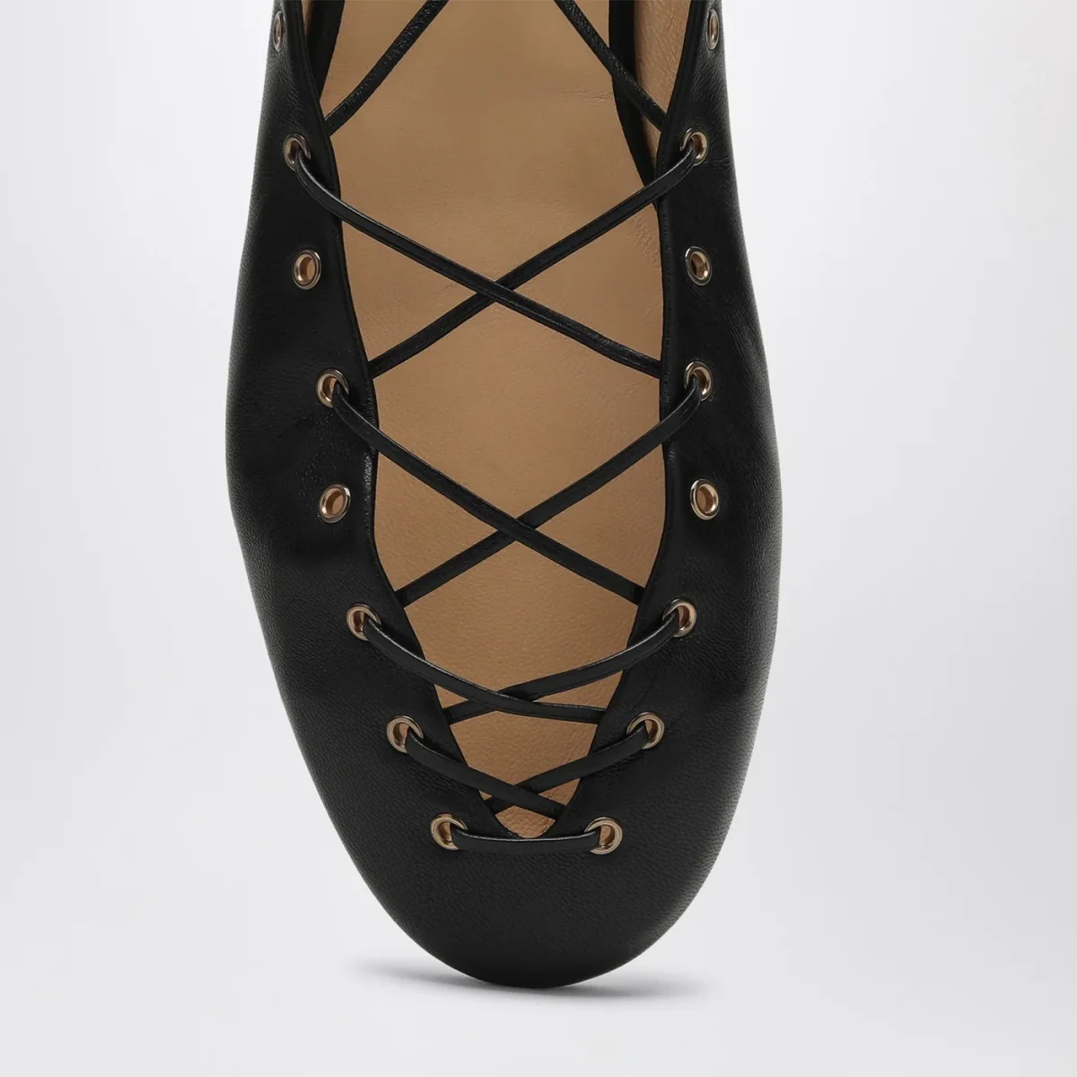 Ballerine di Chloé in pelle nera, caratterizzate da punta a mandorla, allacciatura stile corsetto, tallone aperto e suola in cuoio.