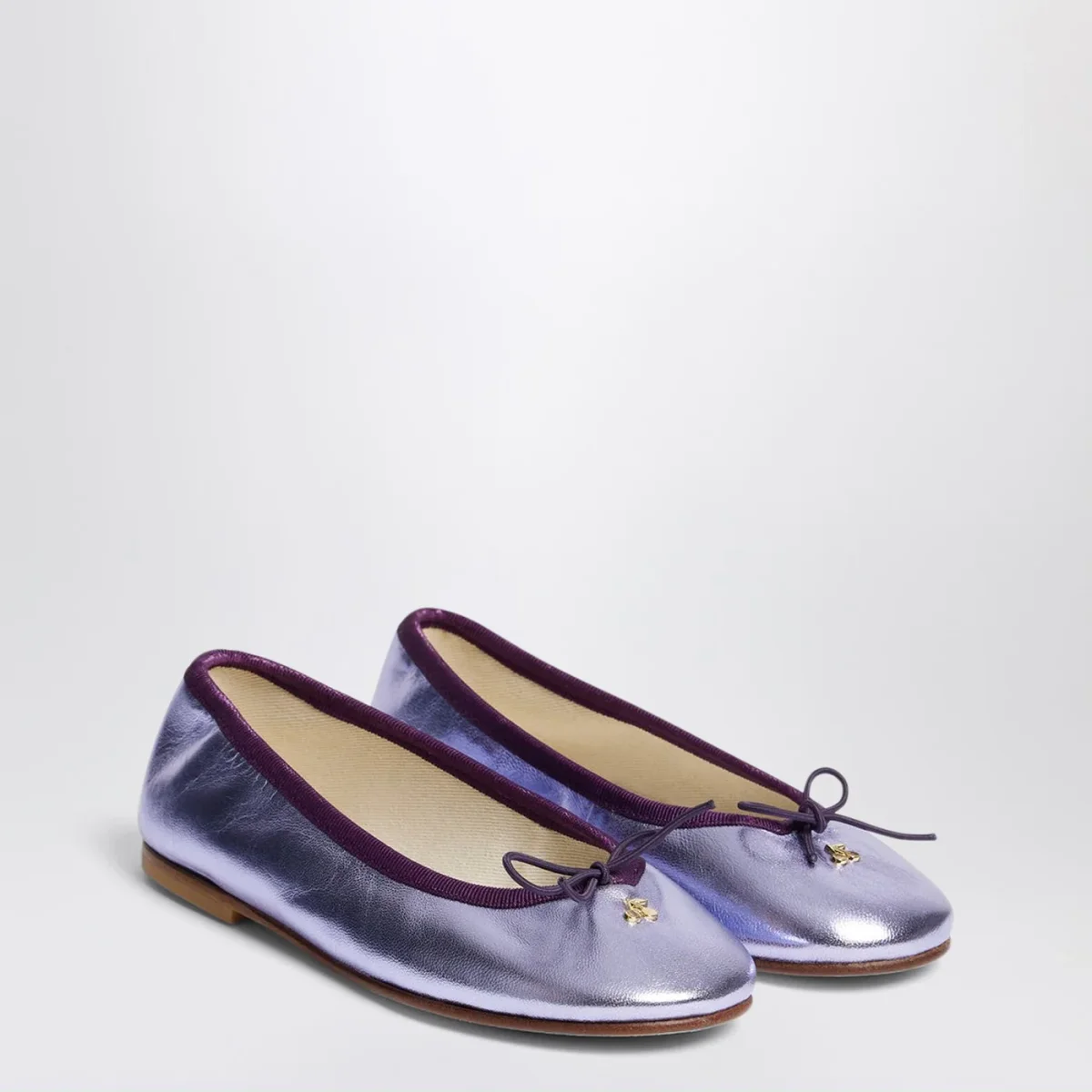 Ballerine di Bonpoint in pelle lilla iridescente• fiocco elasticizzato• ciliegia gioiello sulla tomaia• suola antiscivolo in cuoio
