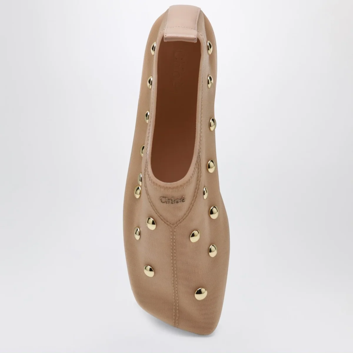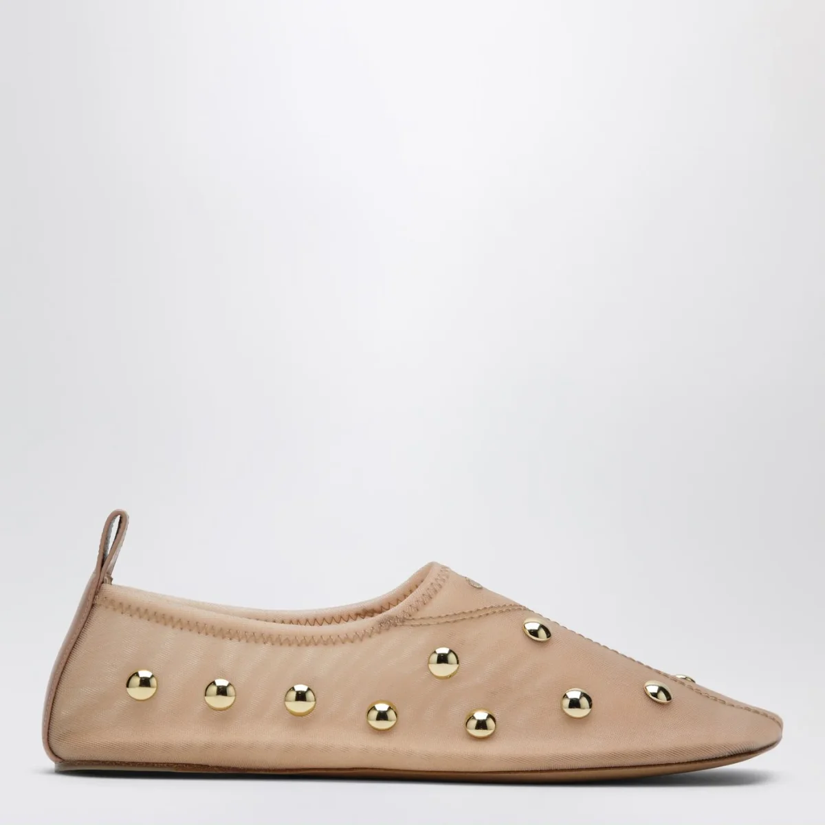 Ballerine di Chloé in rete trasparente rosa chiaro• Borchie applicate all-over in metallo color oro• Cuciture geometriche• Linguetta sul retro• Suola in cuoio