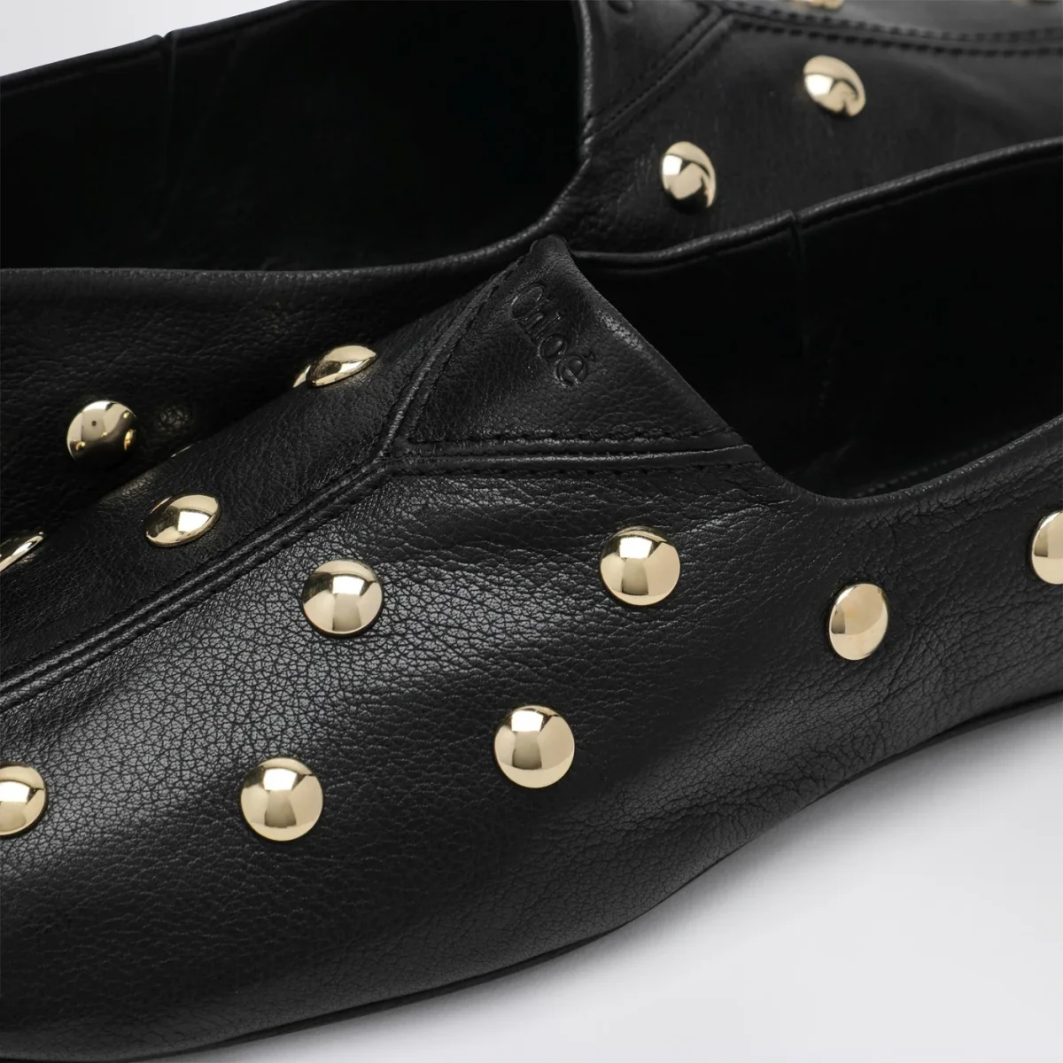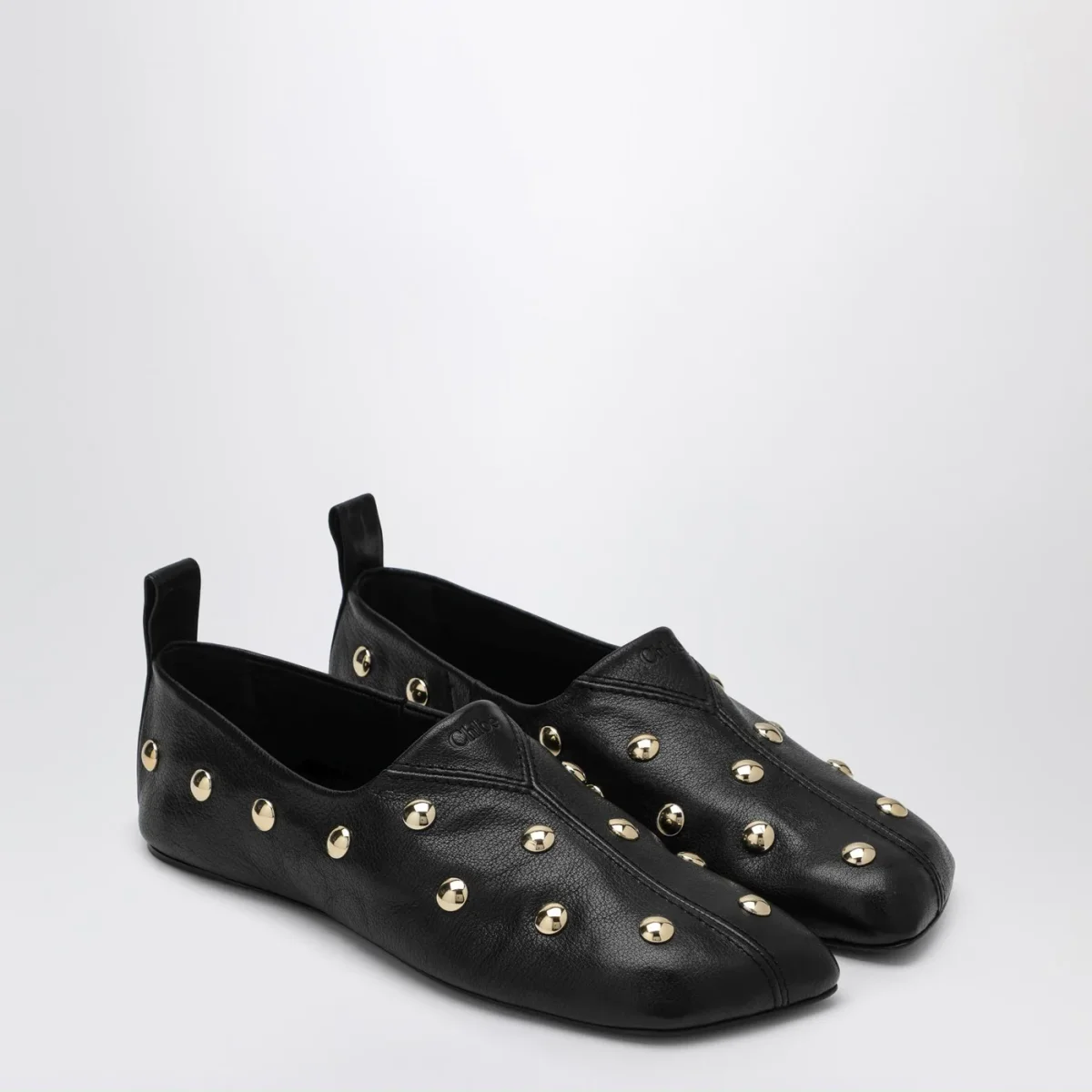 Ballerine di Chloé in pelle nere• applicazione di borchie all-over in metallo di color oro• linguetta sul retro• suola in gomma