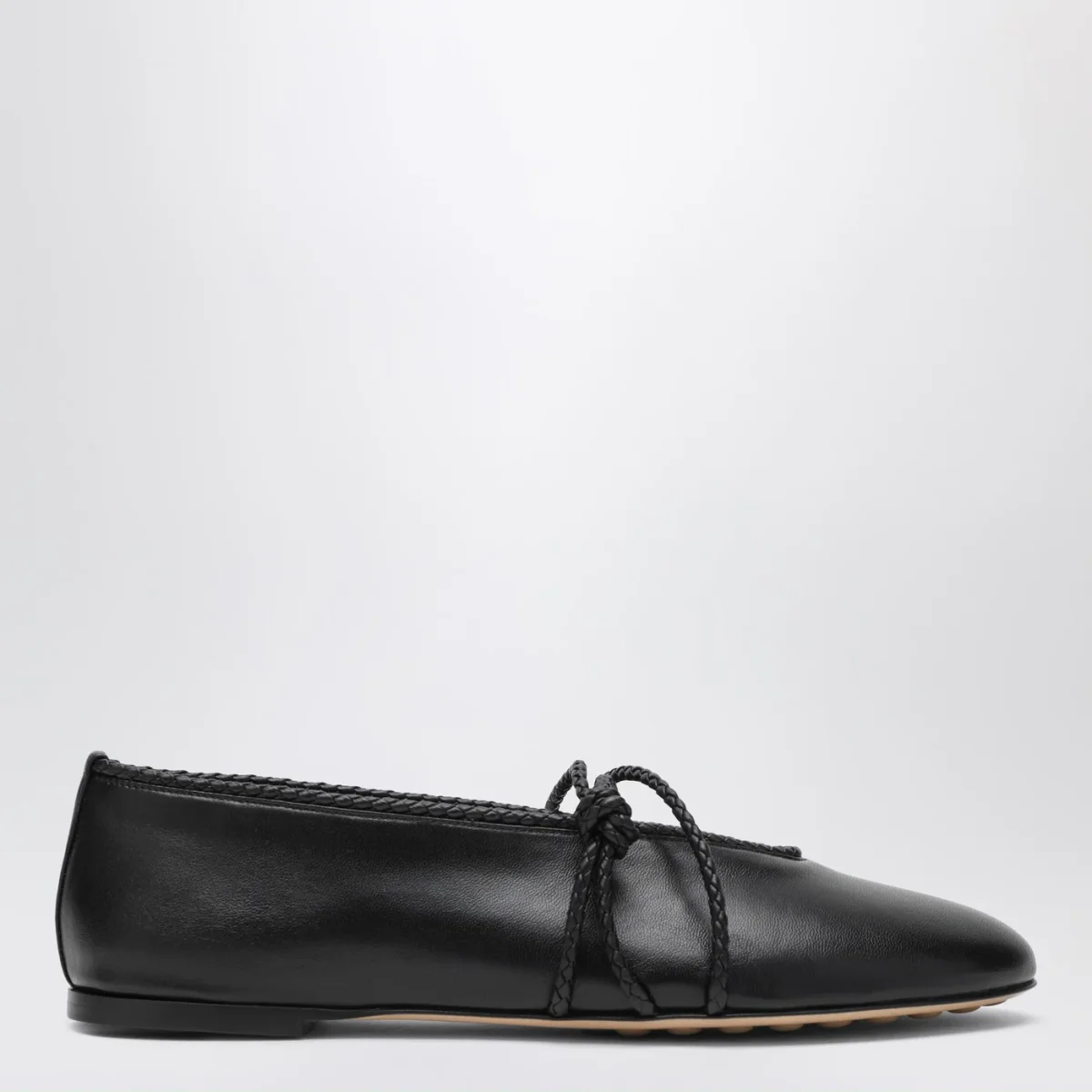 Ballerine Mary-Jane di Bottega Veneta in pelle di agnello nere•f initure con dettaglio coassiale• punta tonda• suola in pelle con gomma iniettata