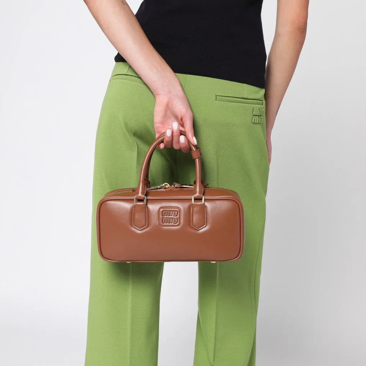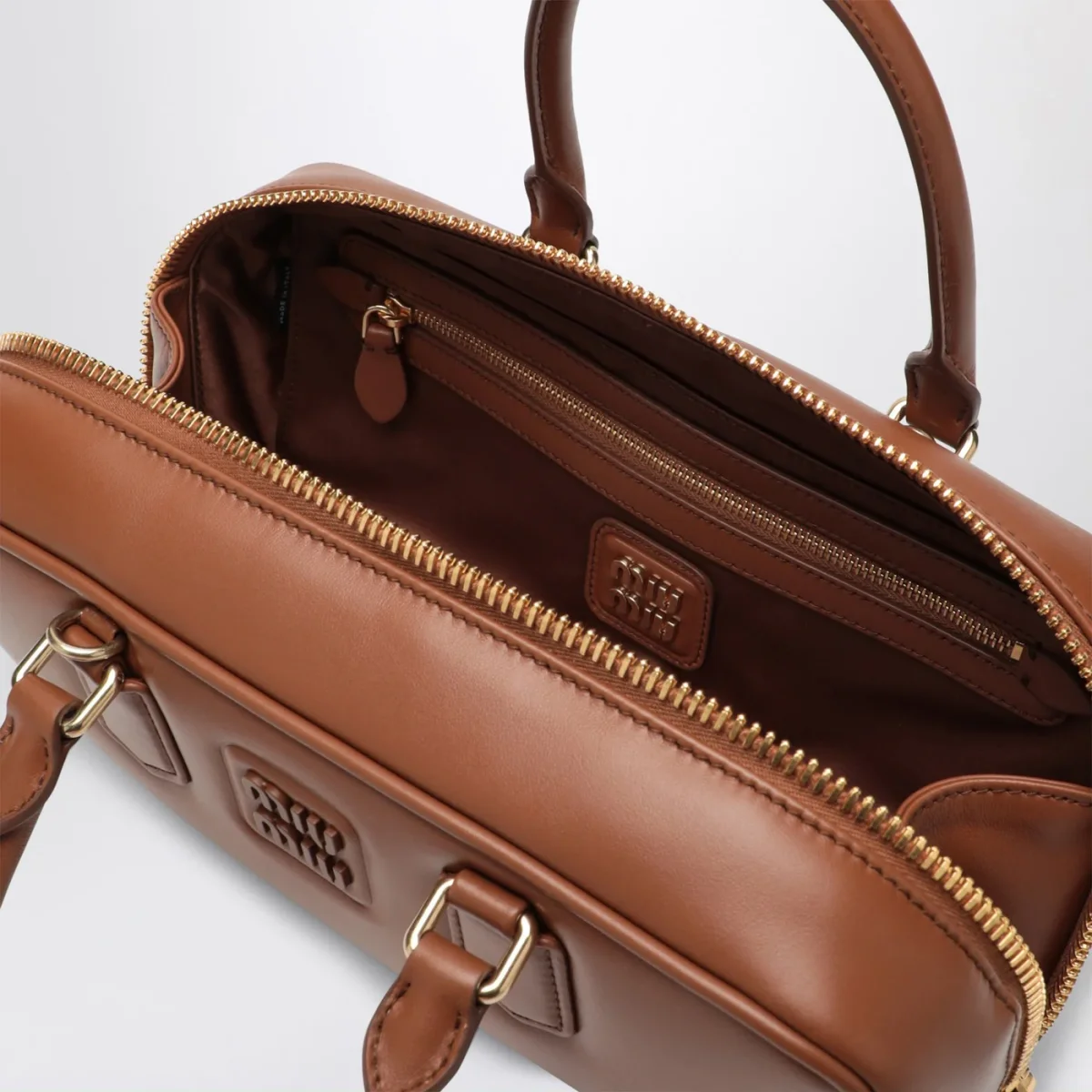 Borsa misura grande di Miu Miu in pelle color Cognac