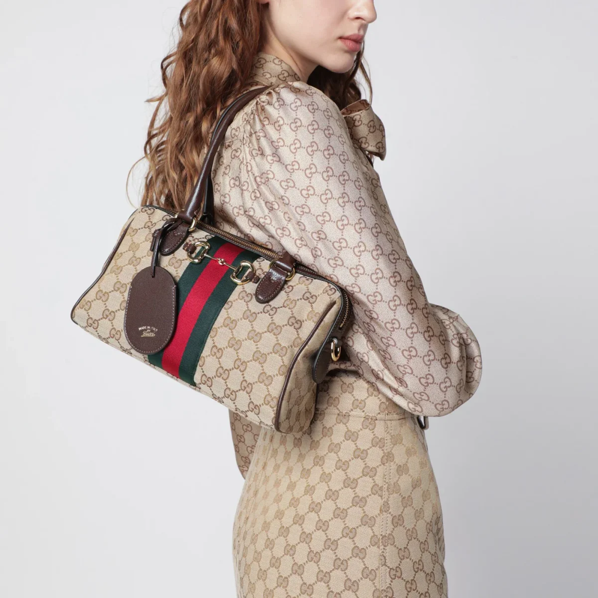 Bauletto misura media di Gucci in tessuto GG color sabbia