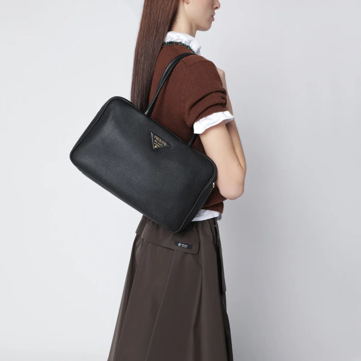 Bauletto grande di Prada in pelle nero