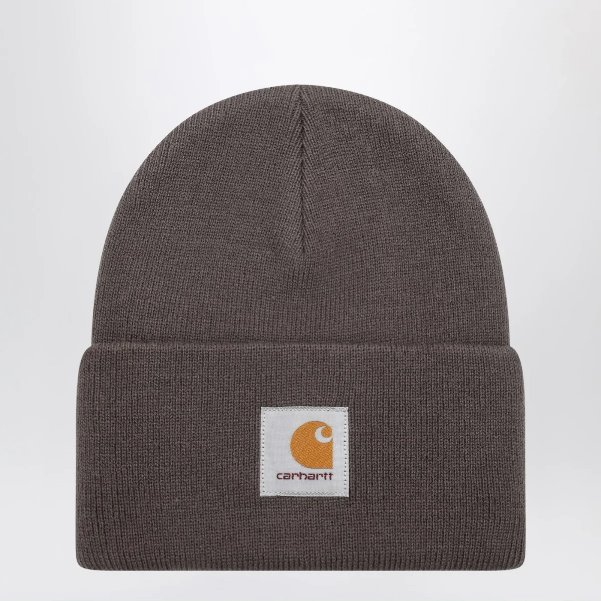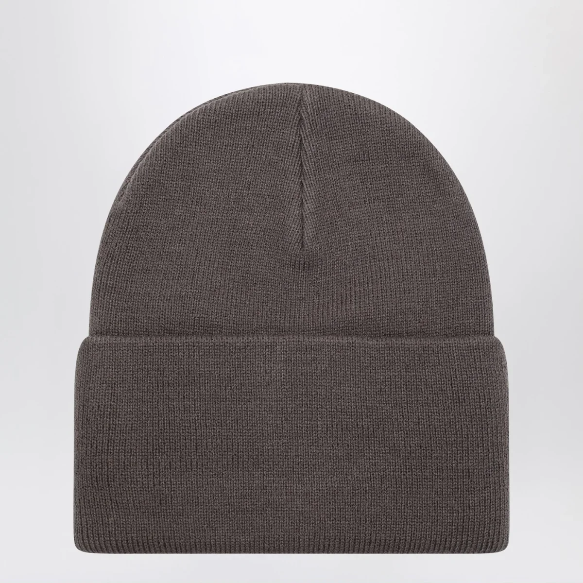 Berretto di Carhartt WIP in tessuto acrilico in maglia a coste grigio con risvolto con patch logo frontale.