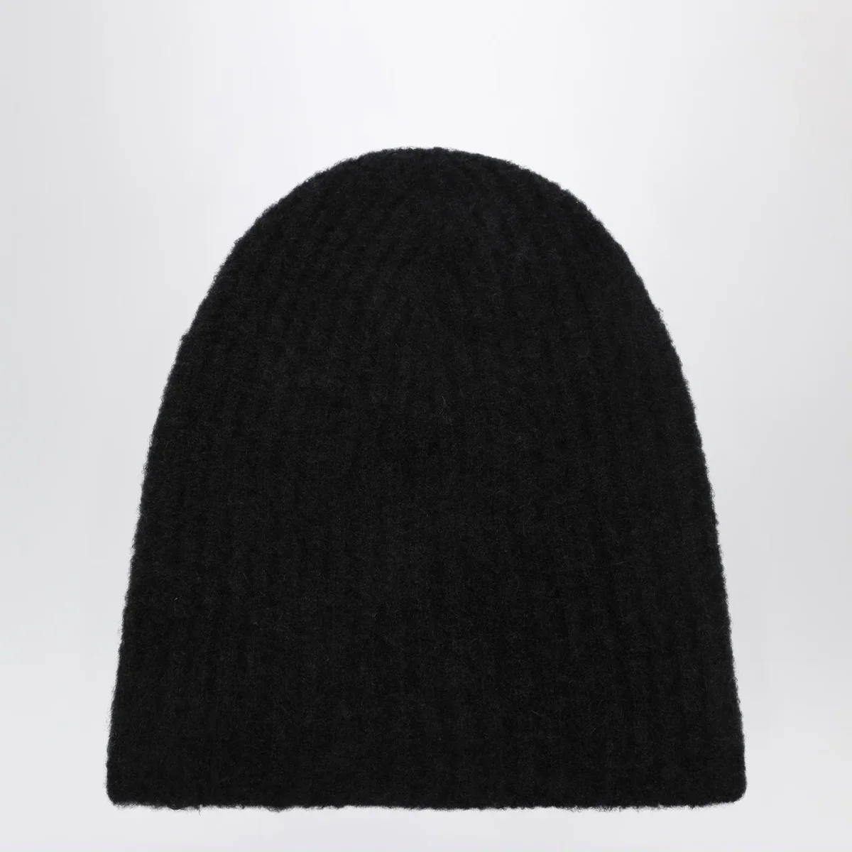Berretto di Roberto Collina in cashmere misto seta nero con trama a costine.