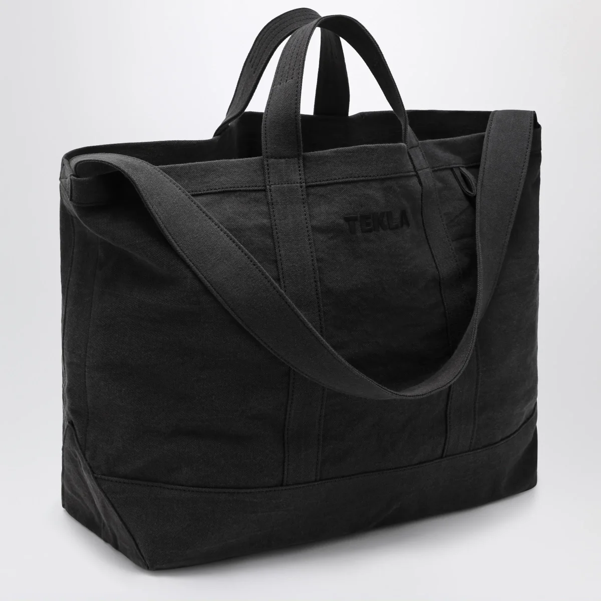 Borsa da spiaggia di Tekla in cotone organico• Colore: Nero• Due manici superiori• Tracolla• Una tasca interna• Ricamo logo lettering frontale tono su tono