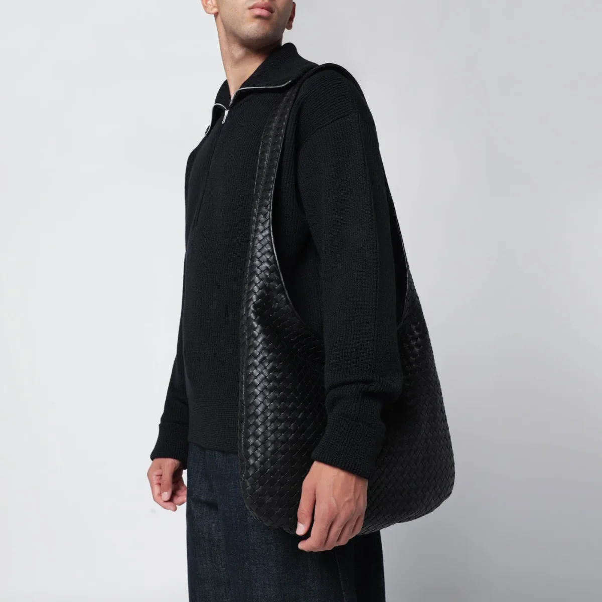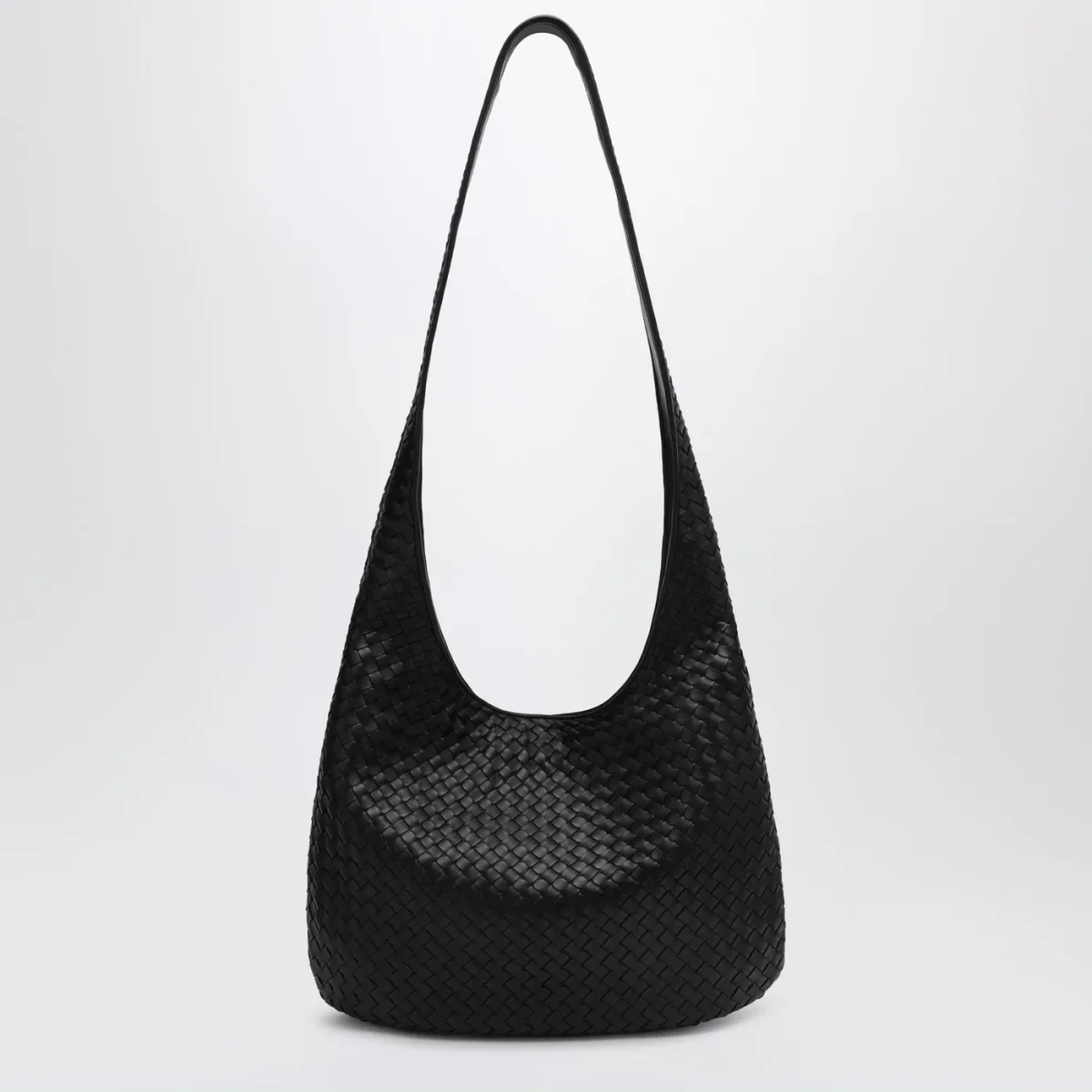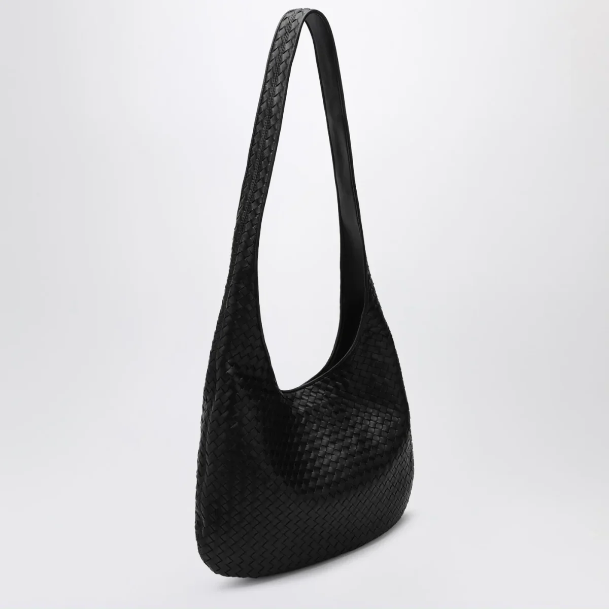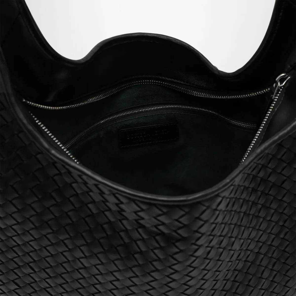 Borsa di Bottega Veneta in nappa nera con lavorazione in Intrecciato, caratterizzata da tracolla, chiusura con zip e una tasca interna con zip.
