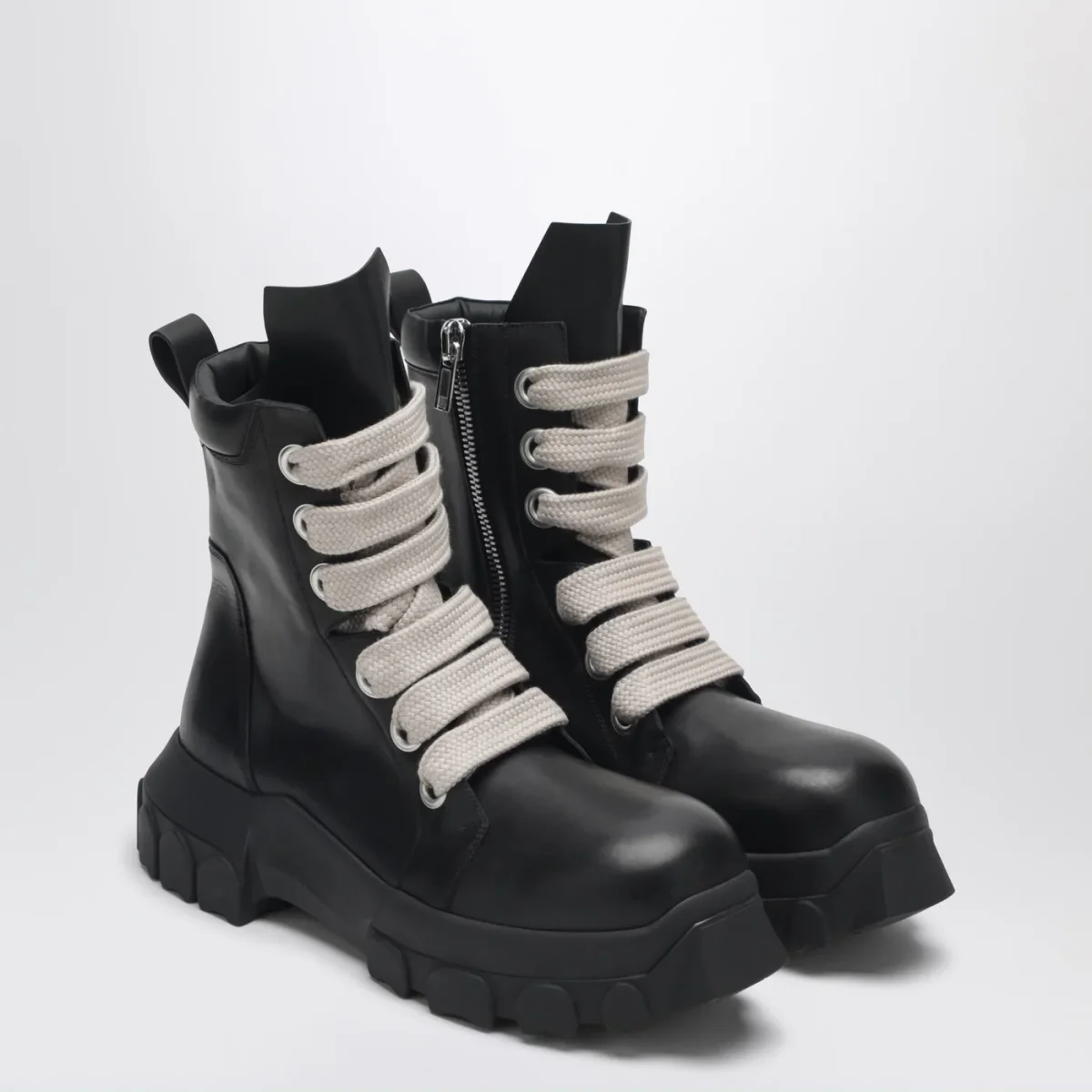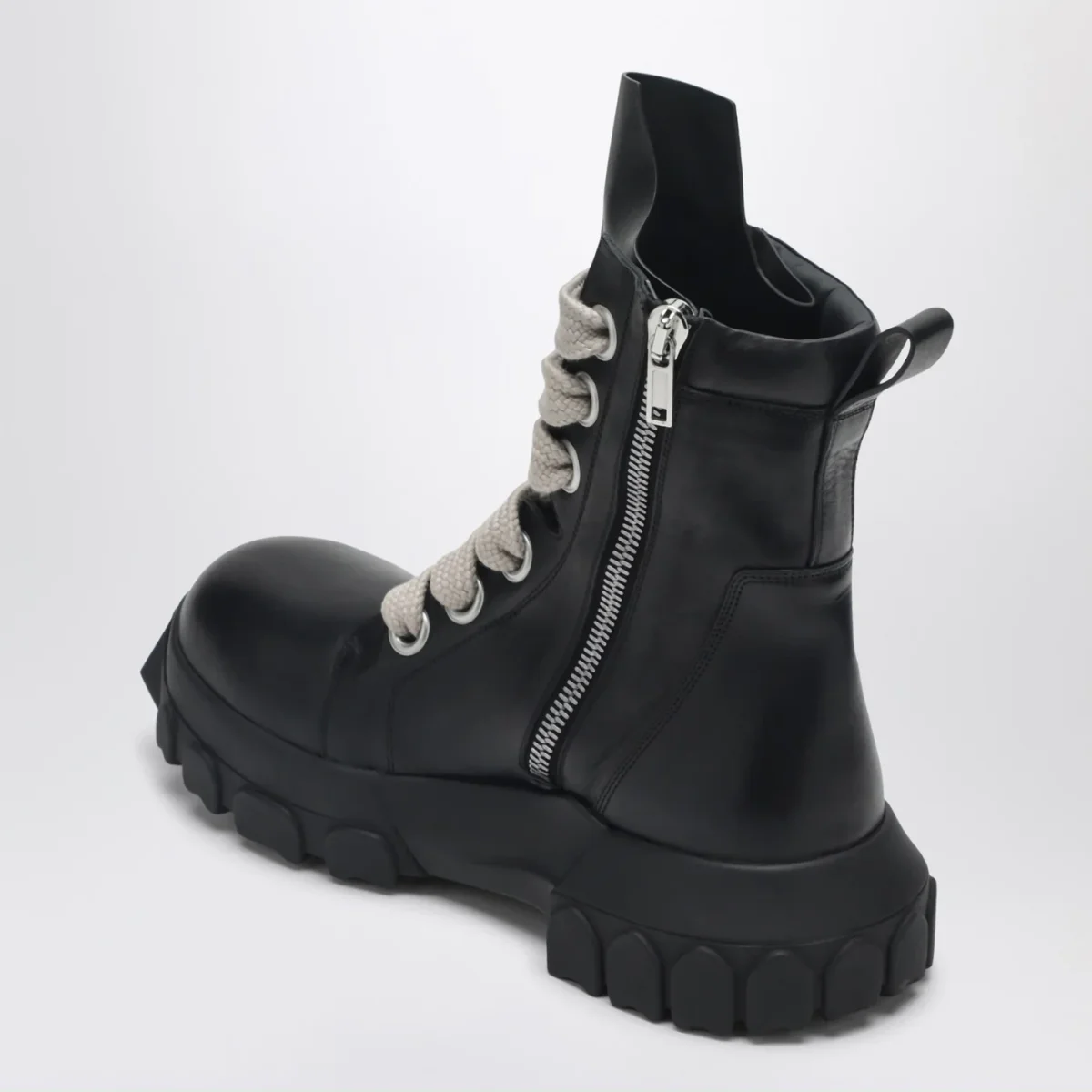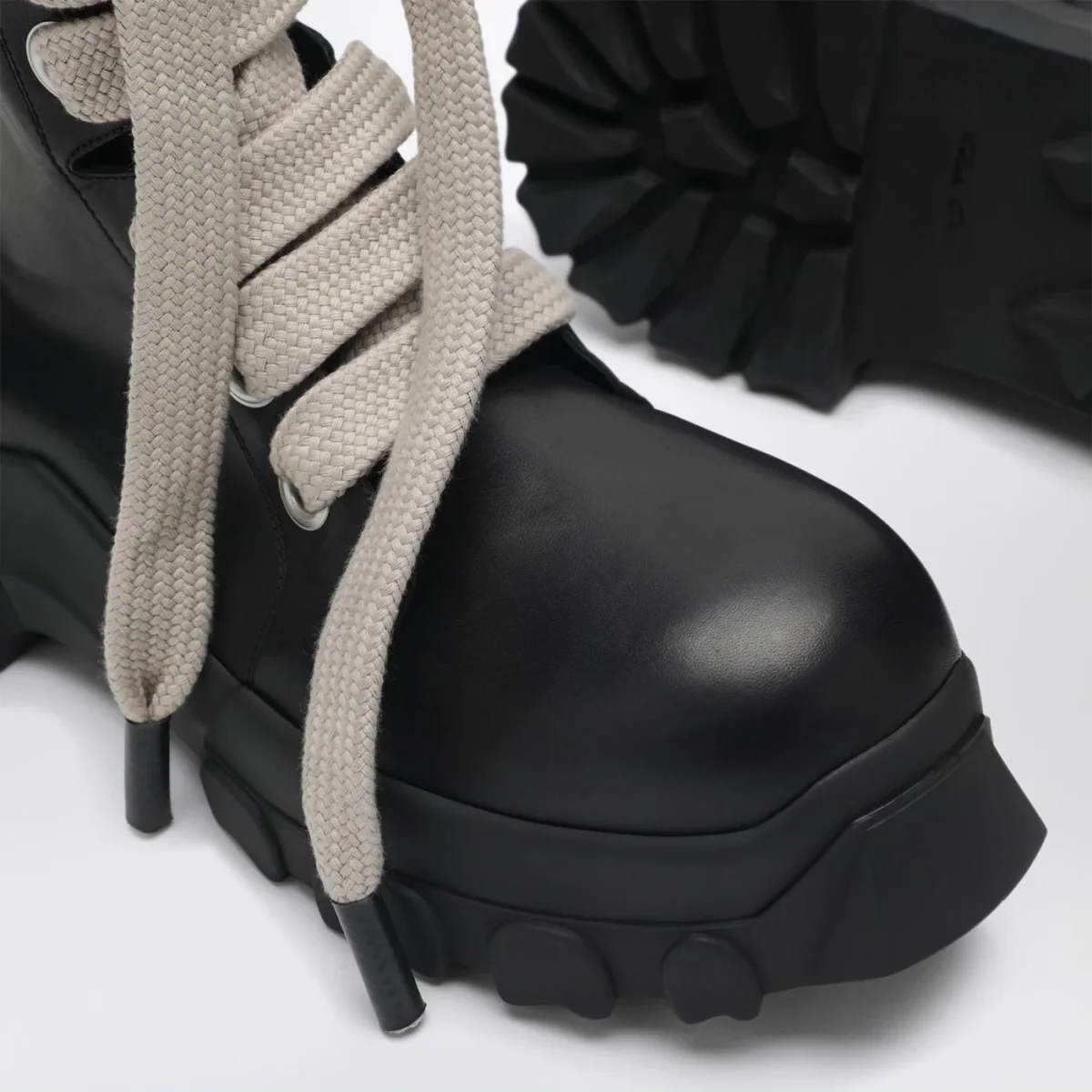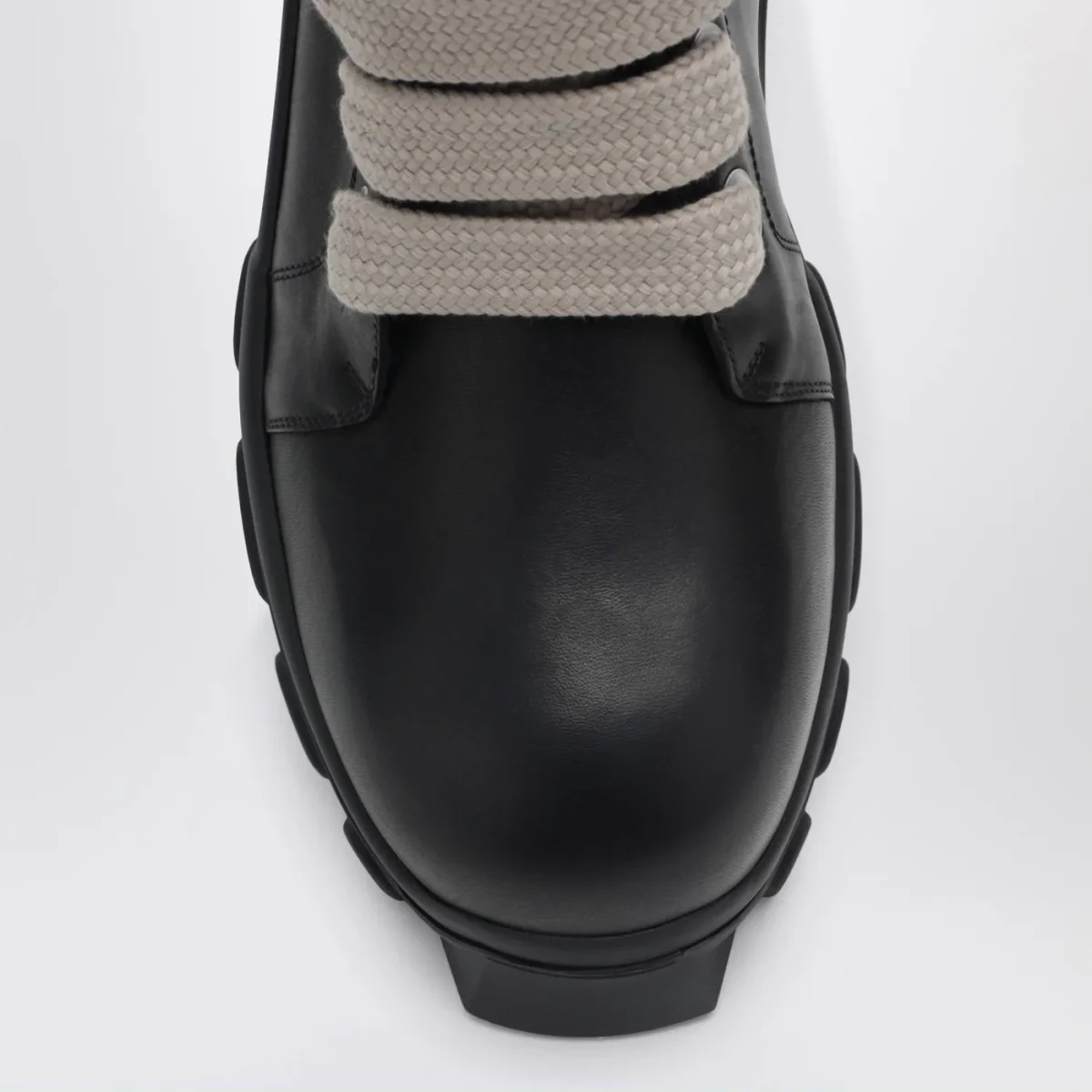 Stivale allacciato di Rick Owens in pelle nero•punta tonda• chiusura con lacci• suola carrarmato in gomma