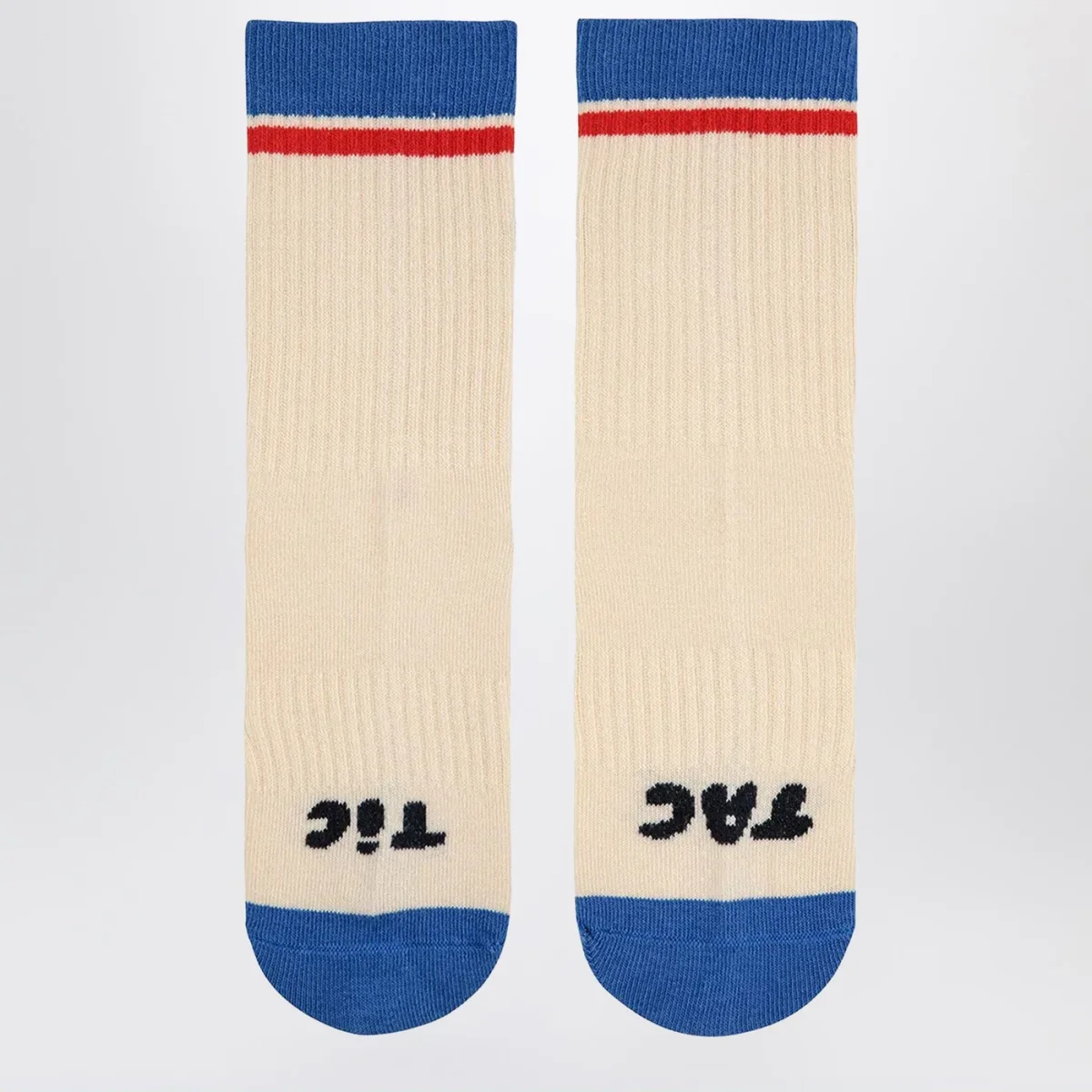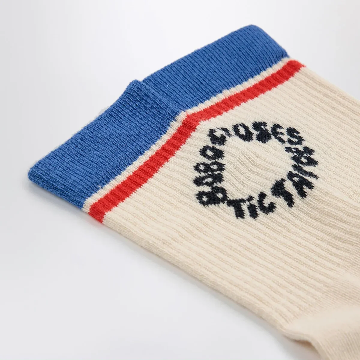 Calzini di Bobo Choses in cotone bianchi/blu/rossi, caratterizzati da bordo a costine e ricamo logo.