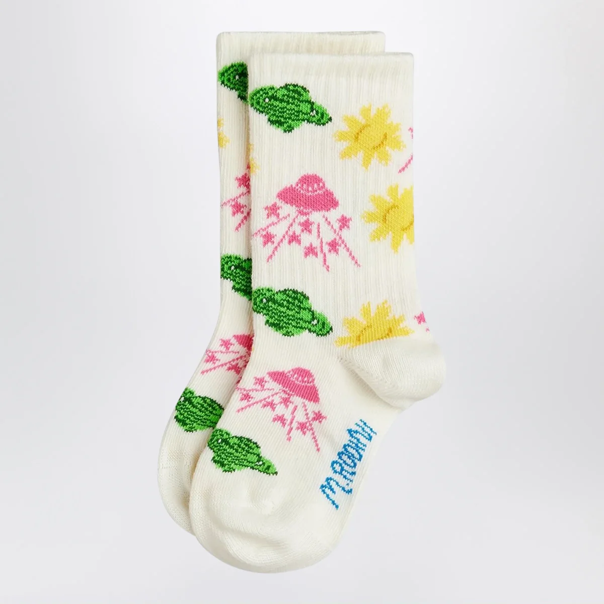 Calzini di Mini Rodini in misto cotone organico• Colore: Bianco• Design a coste• Stampa spaziale colorata