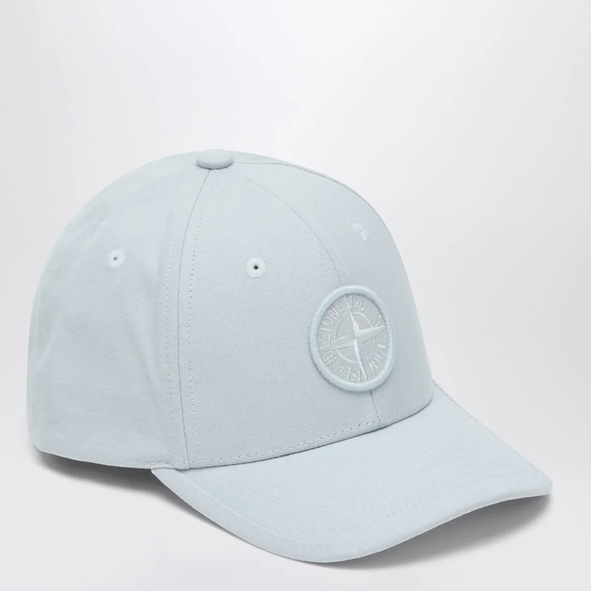 Cappello da baseball di Stone Island in cotone azzurro, caratterizzato da misura regolabile sul retro e logo Compass tono su tono sul davanti.