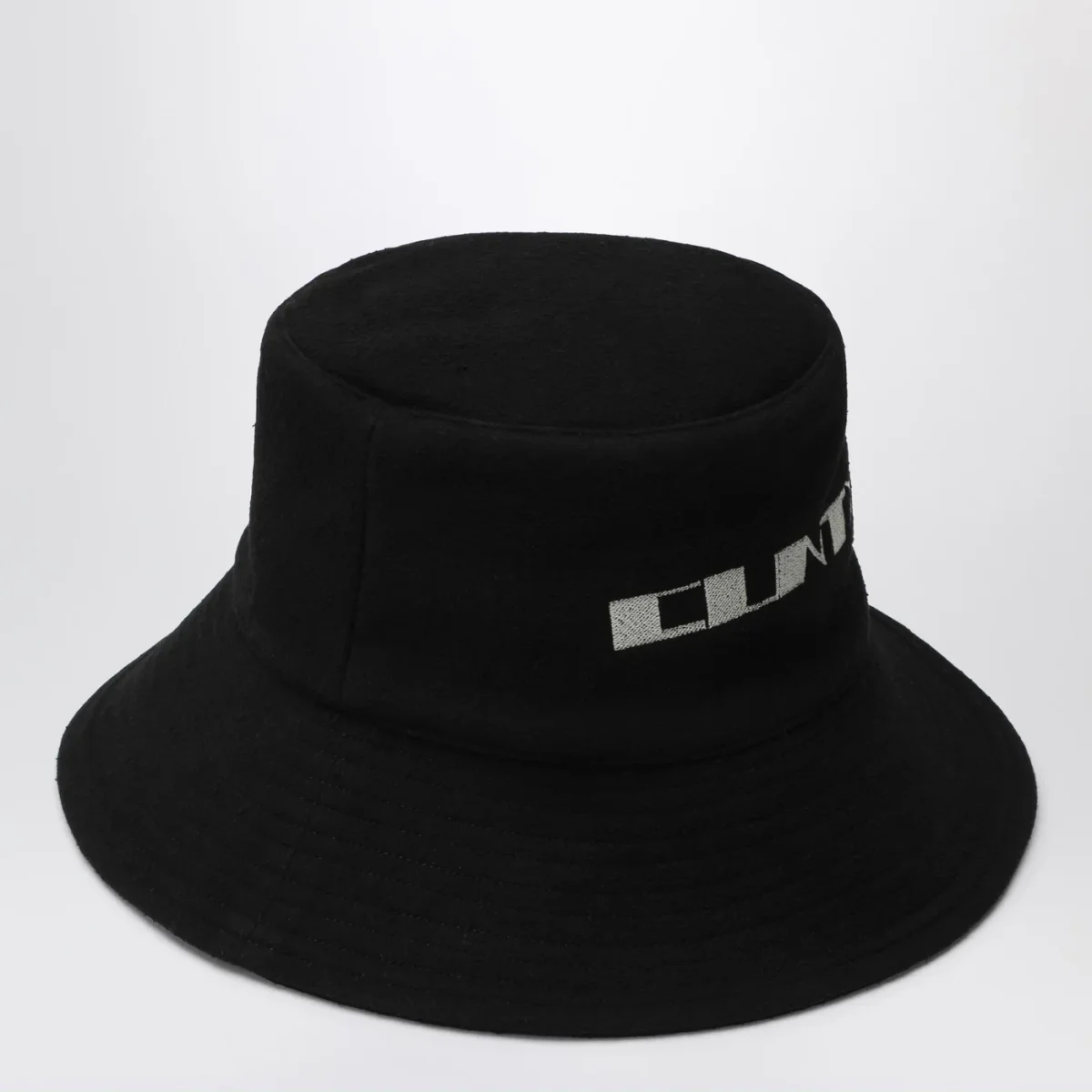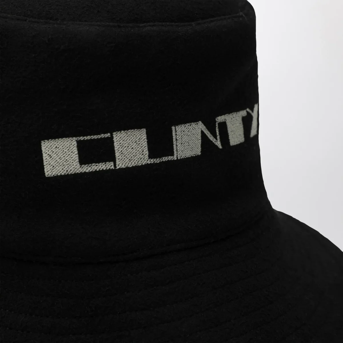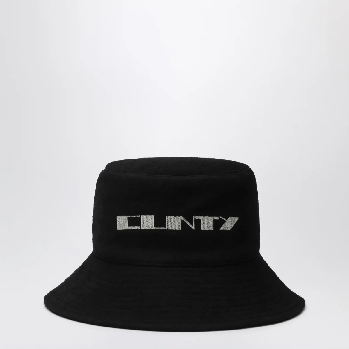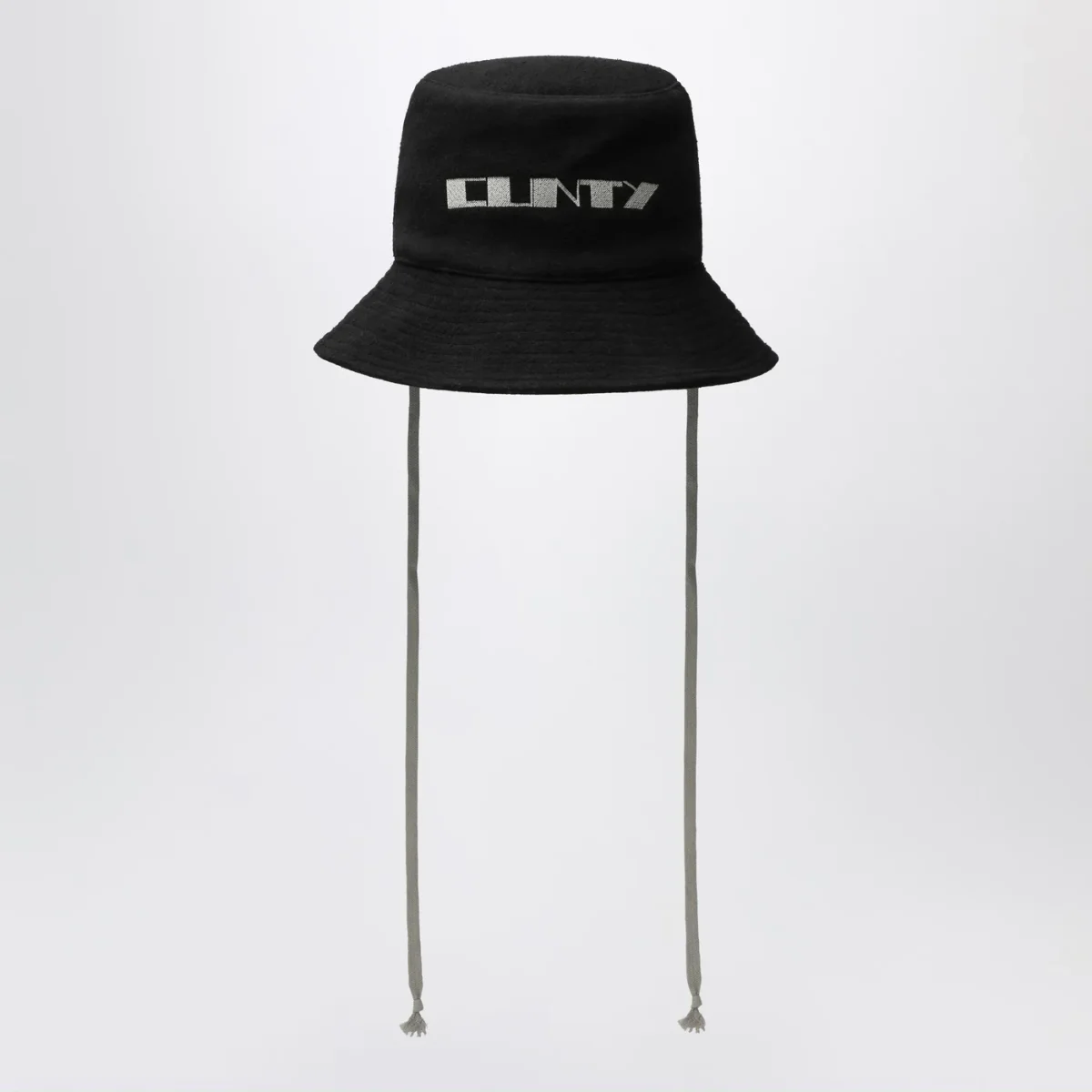 Cappello da pescatore di DRKSHDW in cotone nero caratterizzato da ricamo logo Cunty sul davanti e laccetti lunghi.