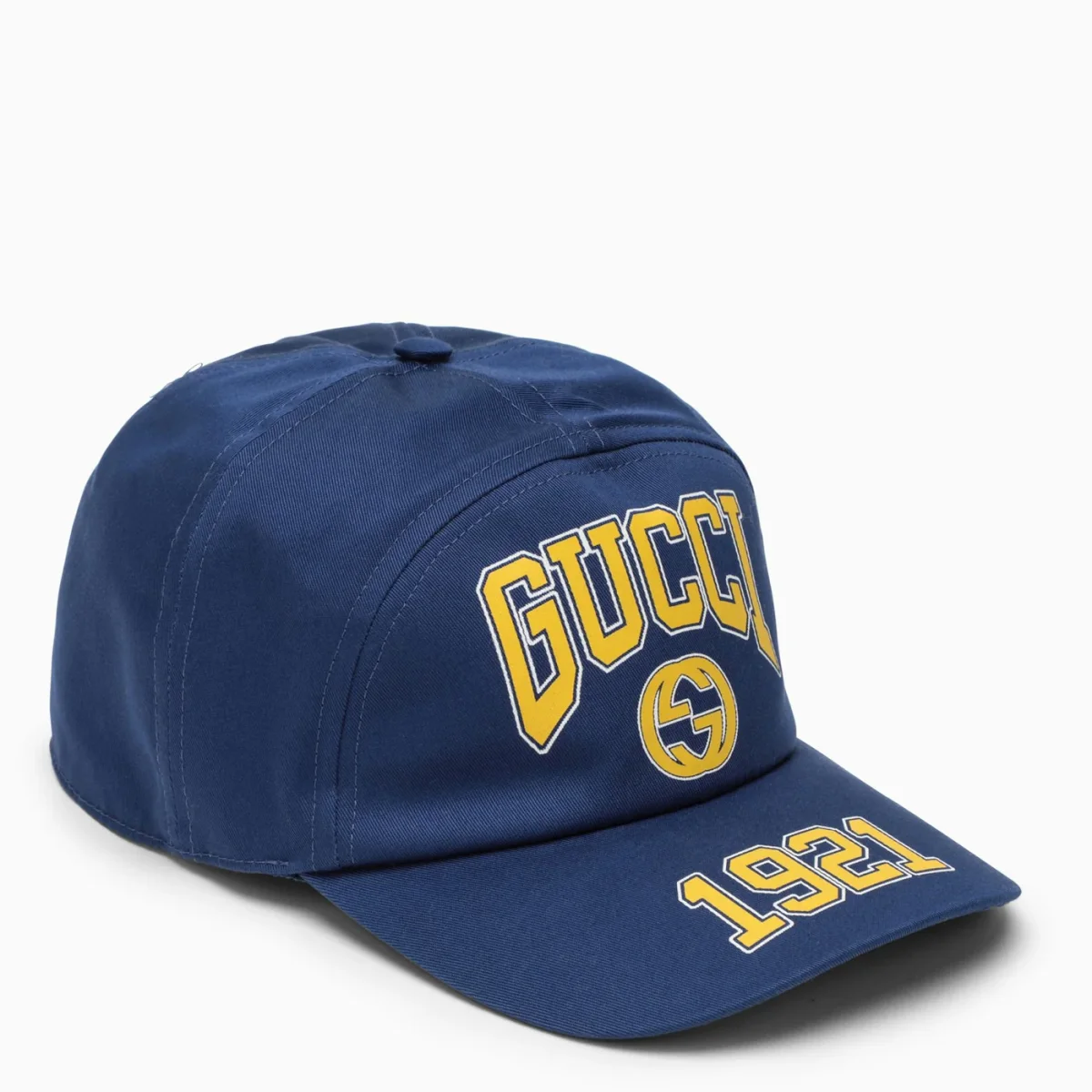 Cappello da baseball di Gucci in cotone blu, caratterizzato da logo frontale a contrasto e chiusura con velcro regolabile.
