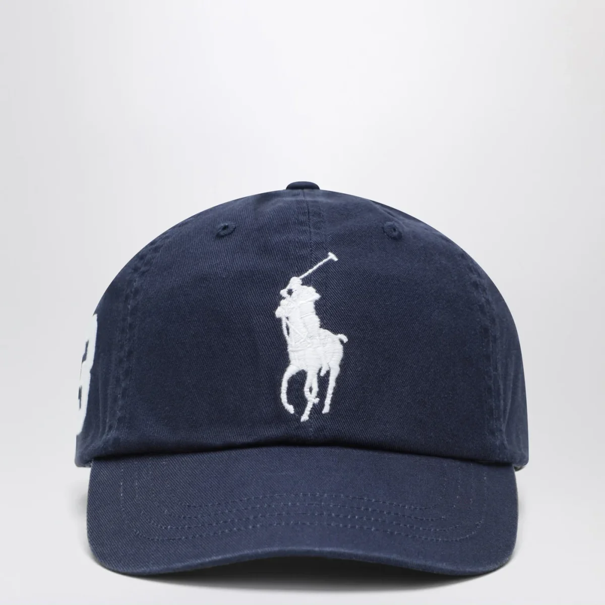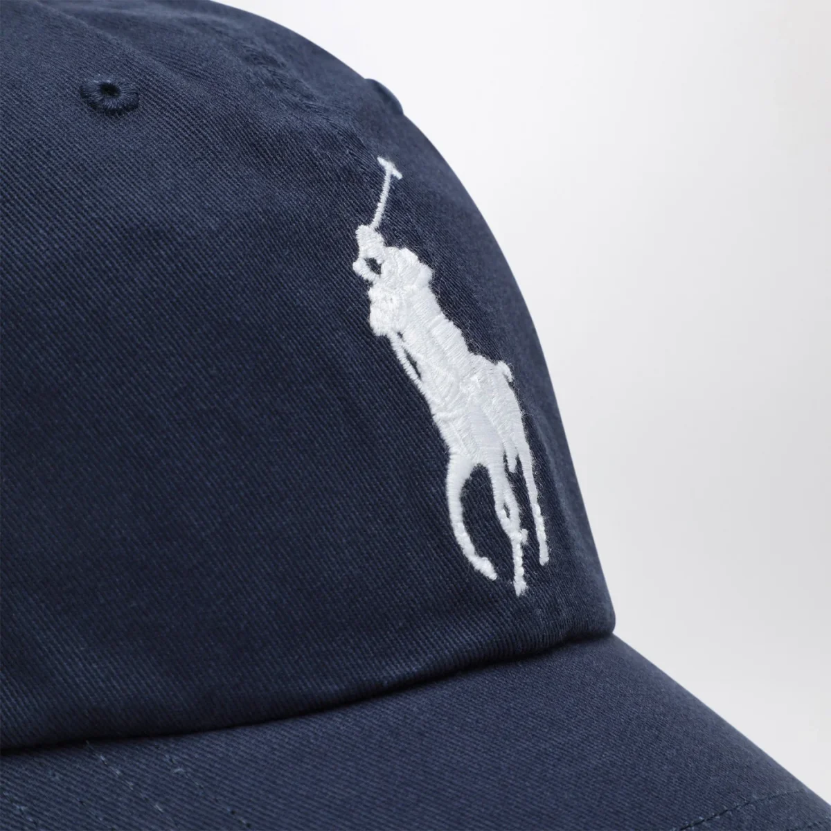 Cappello da baseball di Polo Ralph Lauren in cotone blu navy, caratterizzato da misura regolabile sul retro, ricamo logo lettering posteriore e ricamo logo sul davanti.