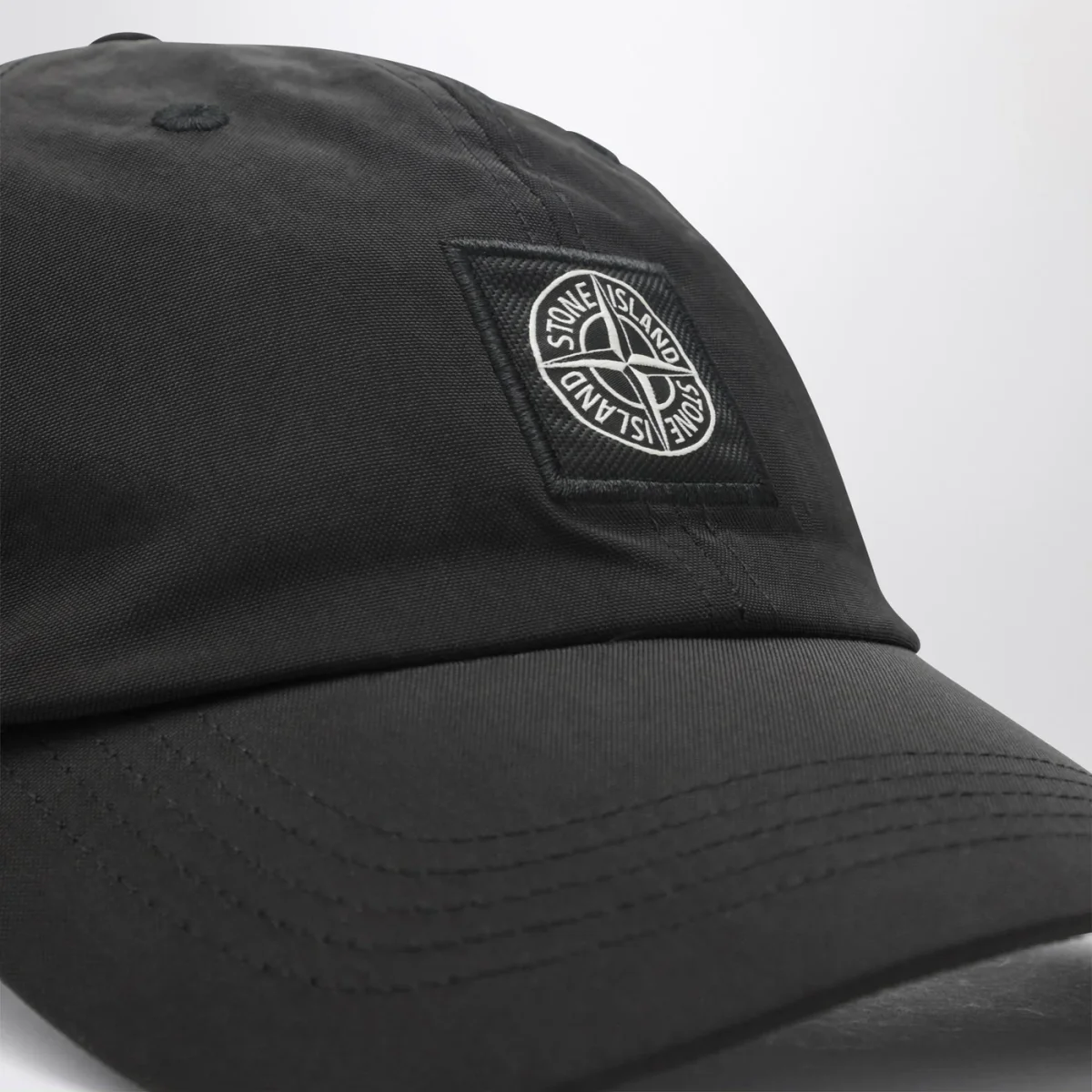 Cappello con visiera di Stone Island in nylon nero• Logo sul davanti• Cinturino regolabile sul retro