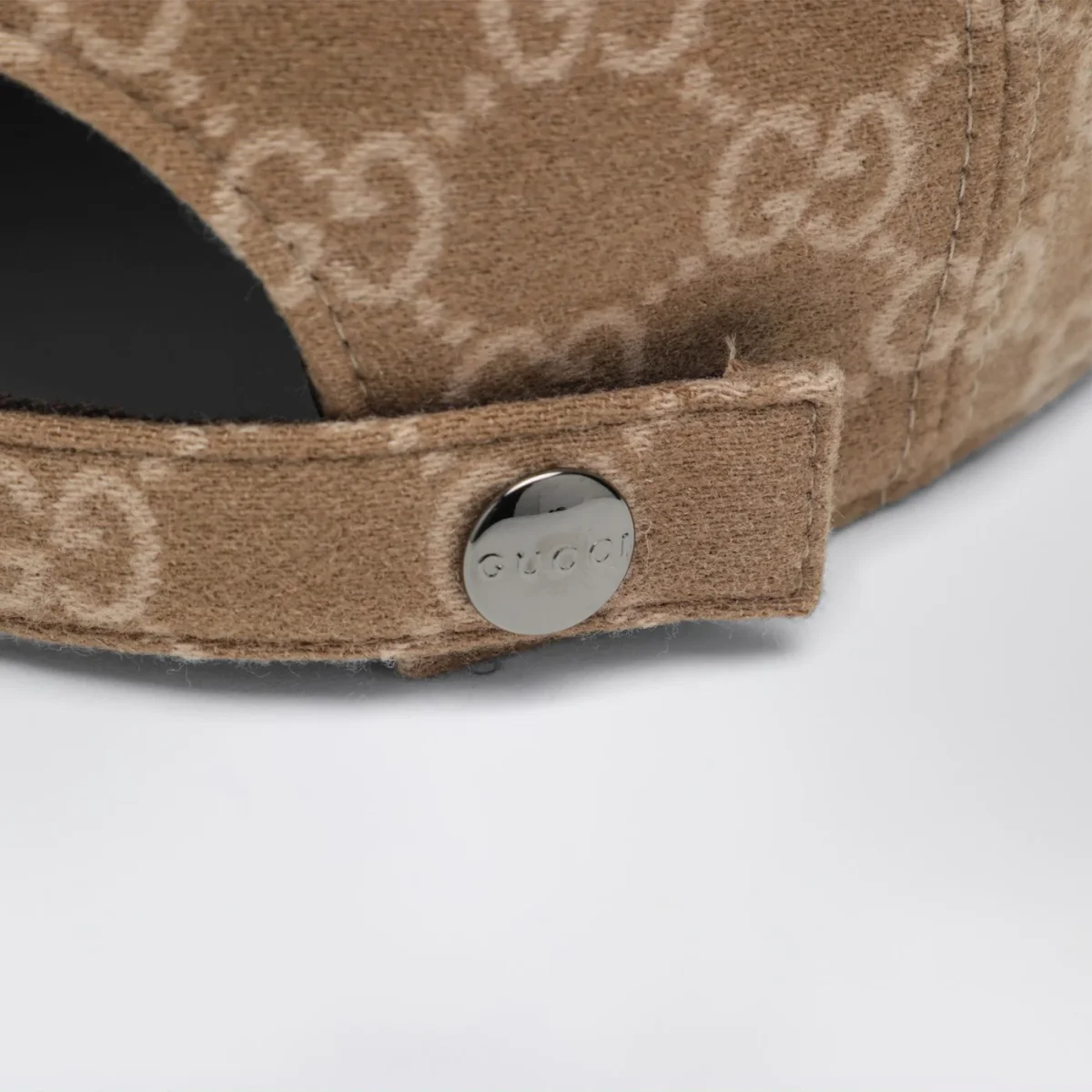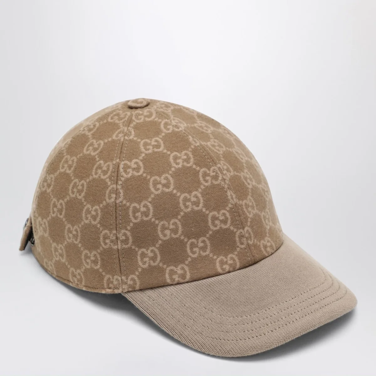 Cappello con visiera di Gucci in tessuto in maglia GG beige e marrone chiaro• visiera in tessuto in maglia beige• modello foderato• chiusura con bottone automatico