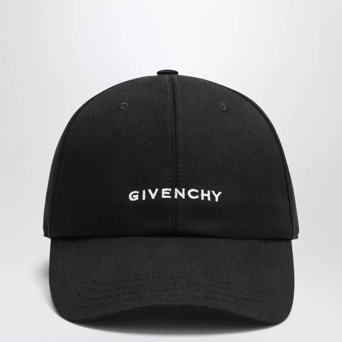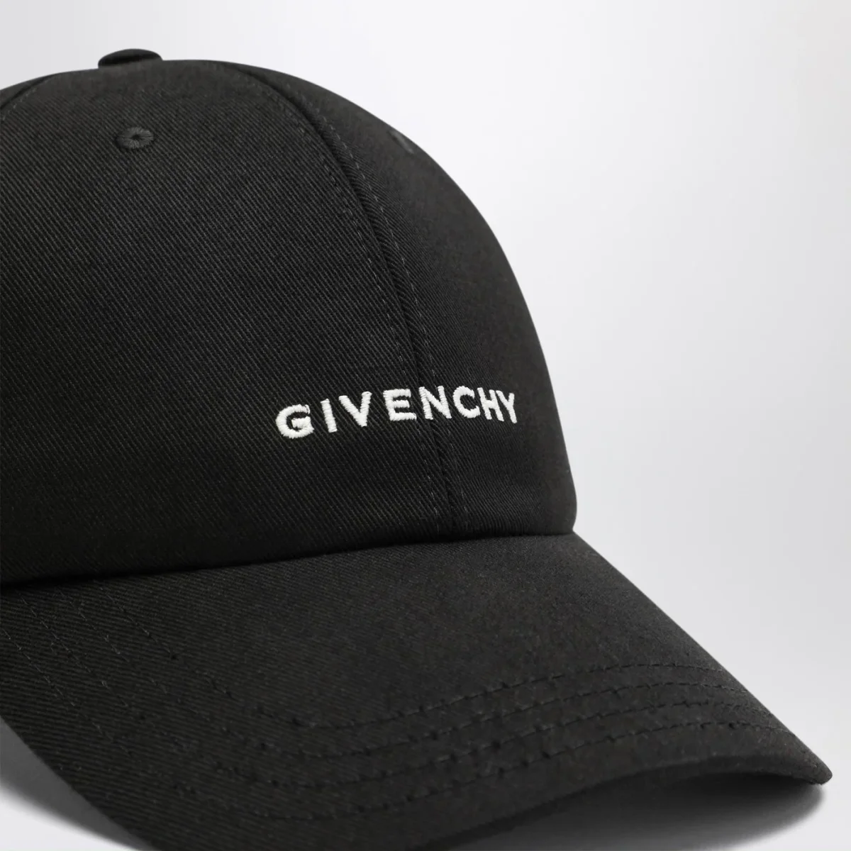 Cappello con visiera di Givenchy in misto cotone nero, caratterizzato da misura regolabile sul retro e logo lettering a contrasto sul davanti.
