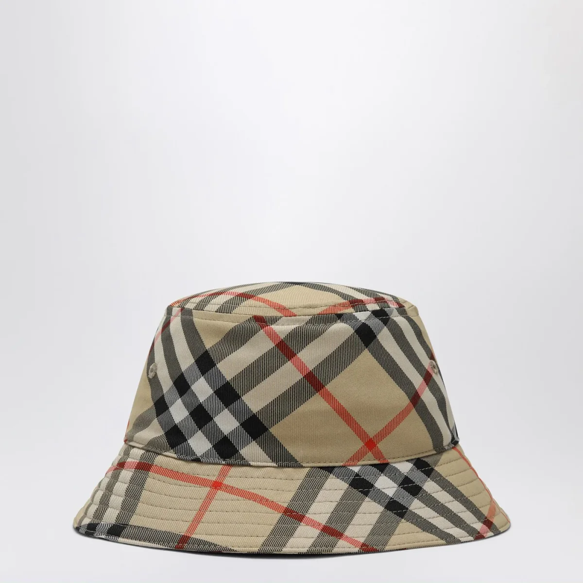 Cappello da pescatore di Burberry in cotone beige con motivo Check all over.